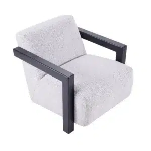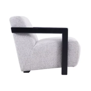 The Lennon Arm Chair in Salt & Pepper strikes a perfect balance between structured form and plush comfort. Its upholstery features a beautifully textured salt and pepper fabric that offers a neutral, versatile palette—ideal for seamlessly blending into both contemporary and traditional interiors. Bold, architectural arms finished in a deep, dark tone create a striking visual contrast against the soft fabric, merging clean geometry with inviting warmth.
