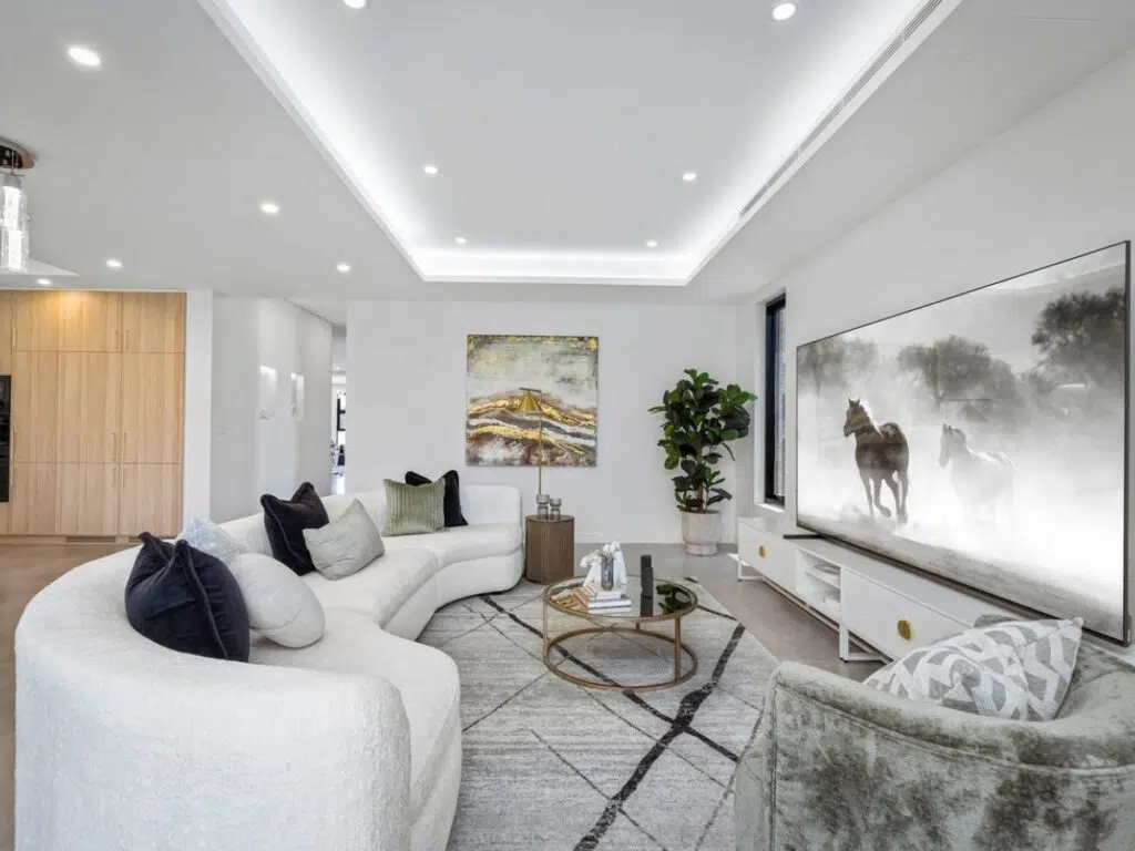 Accent chairs in complementary colours, or a feature armchair in natural linen, can create additional seating and visual interest. Side tables, coffee tables, and storage ottomans not only provide functionality but also enhance the room’s aesthetic. Adding seasonal touches like vases with dried flowers, autumn-inspired artwork, or decorative bowls creates a cozy and sophisticated ambiance.