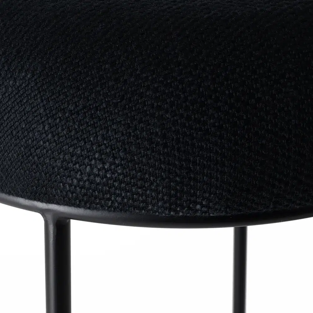 The Aiden Black Steel Bar Stool combines a clean, minimalist silhouette with practical comfort. Its cushioned round seat is upholstered in a premium black linen blend (78.1% viscose, 13.6% cotton, 8.4% linen), offering a soft yet durable surface that complements contemporary interiors. The stool’s 76cm height makes it perfectly suited for standard bar counters and kitchen islands, while the fixed footrest—positioned 25cm from the floor—provides added support during extended seating.