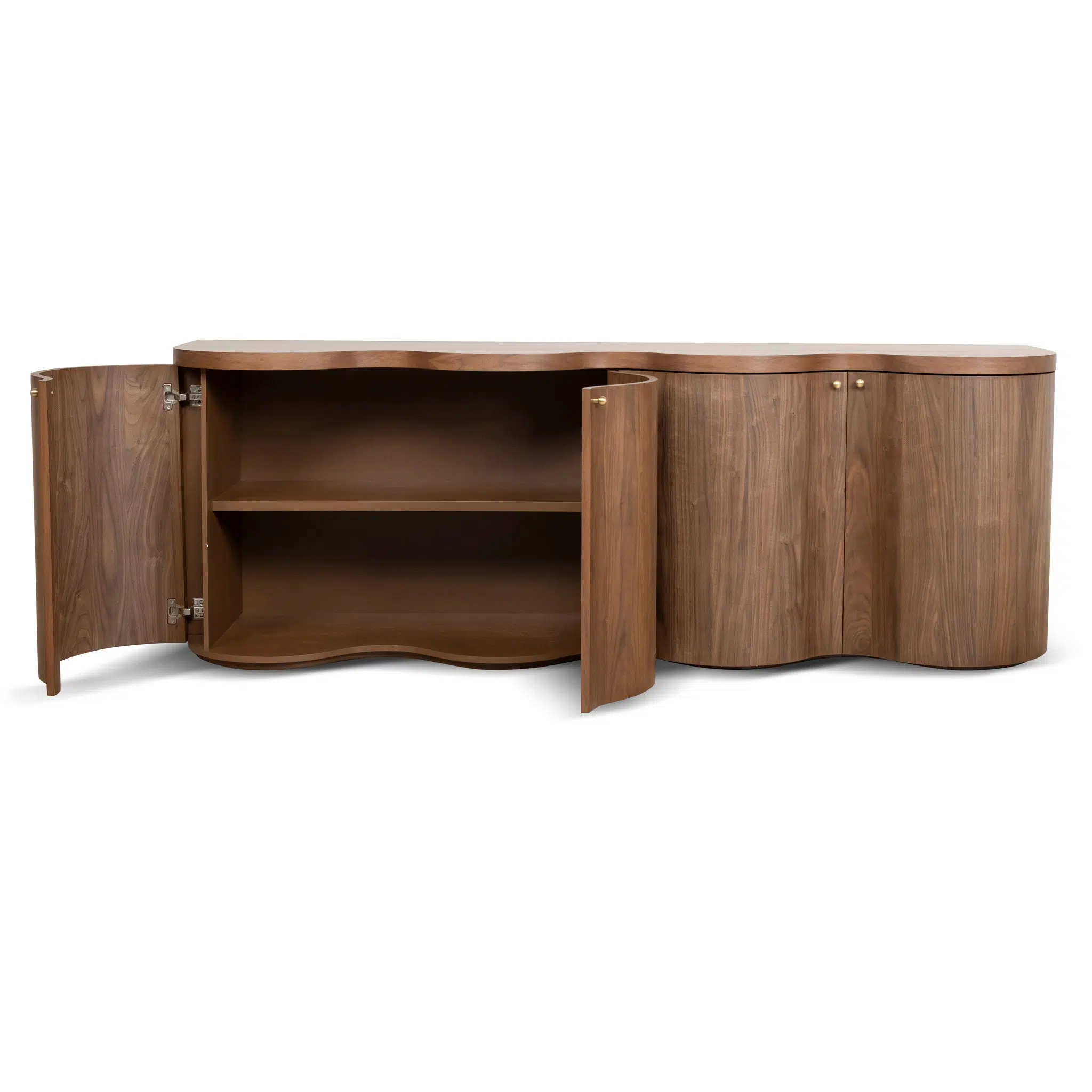 This 2.15m buffet unit features a light walnut finish that effortlessly blends into modern, minimalist, or classic interior schemes. The warm, natural tones enhance the visual appeal of dining areas while creating an inviting atmosphere for gatherings and everyday use.