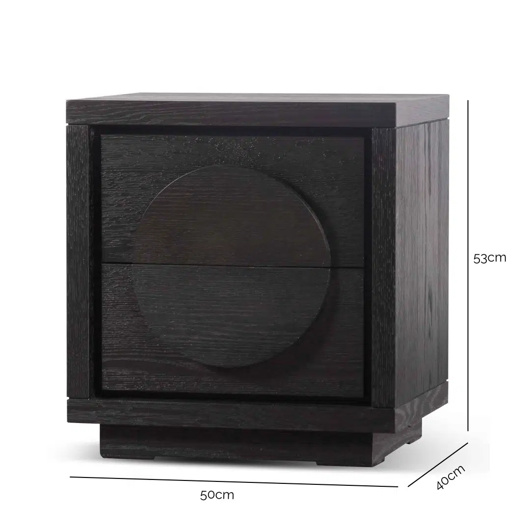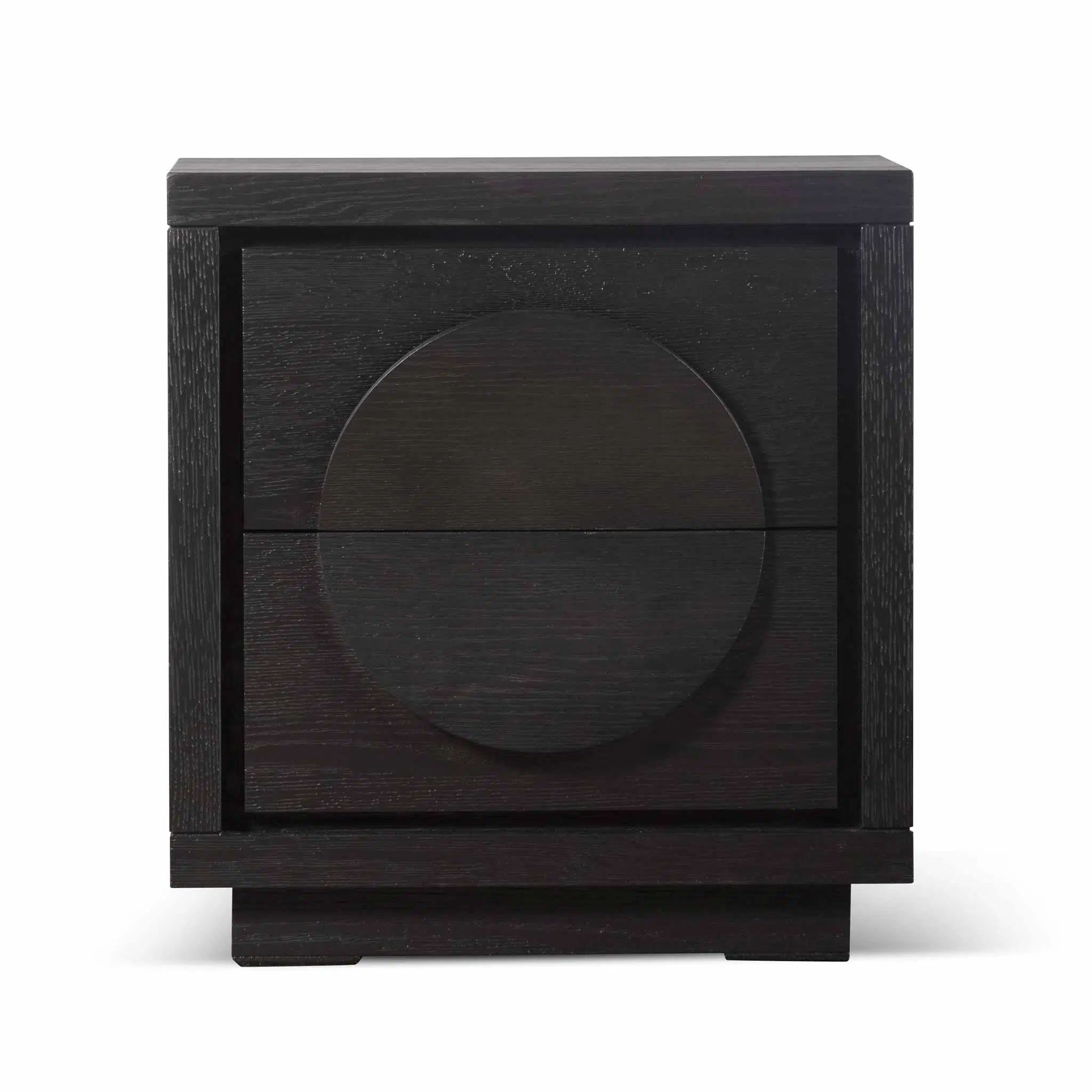 Crafted from engineered wood with premium black oak veneer surfaces, this piece balances durability with natural beauty. The deep wood patterns throughout mimic organic textures, while the reinforced frame ensures stability for everyday use in high-traffic bedroom environments.