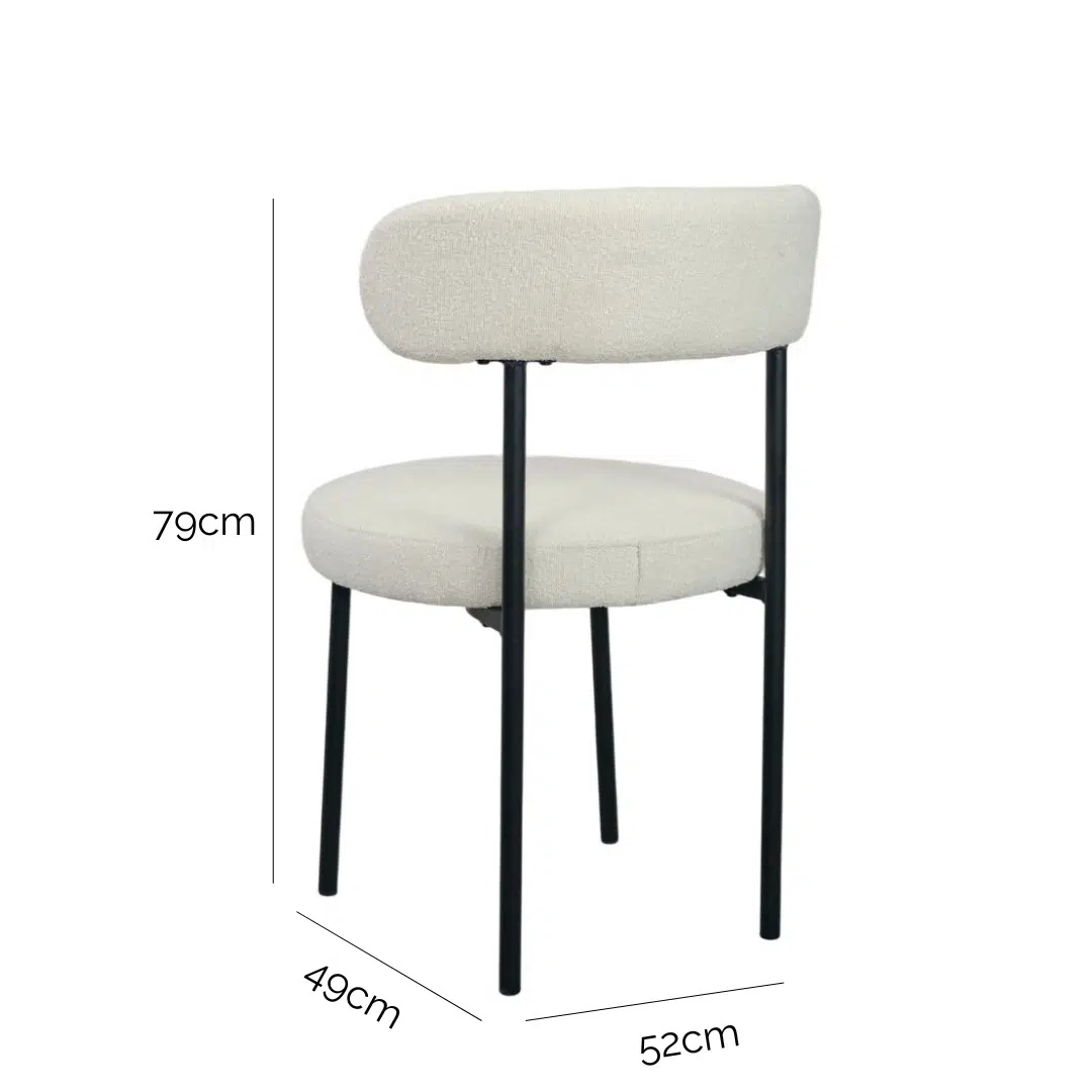 The Arco Boucle Dining Chair brings a touch of warmth and elegance to your dining space. Upholstered in a soft cream boucle fabric, it combines inviting texture with a sleek, contemporary silhouette.