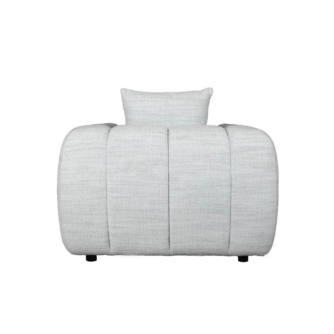 The Aria Fabric Armchair blends sleek, clean lines with a soft fabric upholstery, creating a perfect balance of contemporary style and cozy comfort.