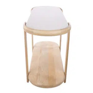 The combination of natural mango wood and crisp white marble creates a harmonious contrast that feels both contemporary and enduring. Its neutral white and natural wood tones integrate effortlessly with a wide range of décor styles, from minimalist to eclectic.
