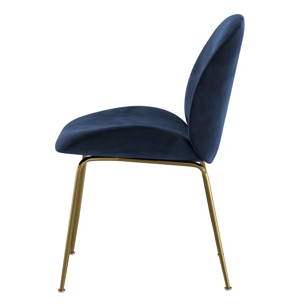 Features: 2 x dining chairs in the box, Inkvelvet fabric with chrome golden brushed metal, Contour seat & back, Golden brushed metal legs