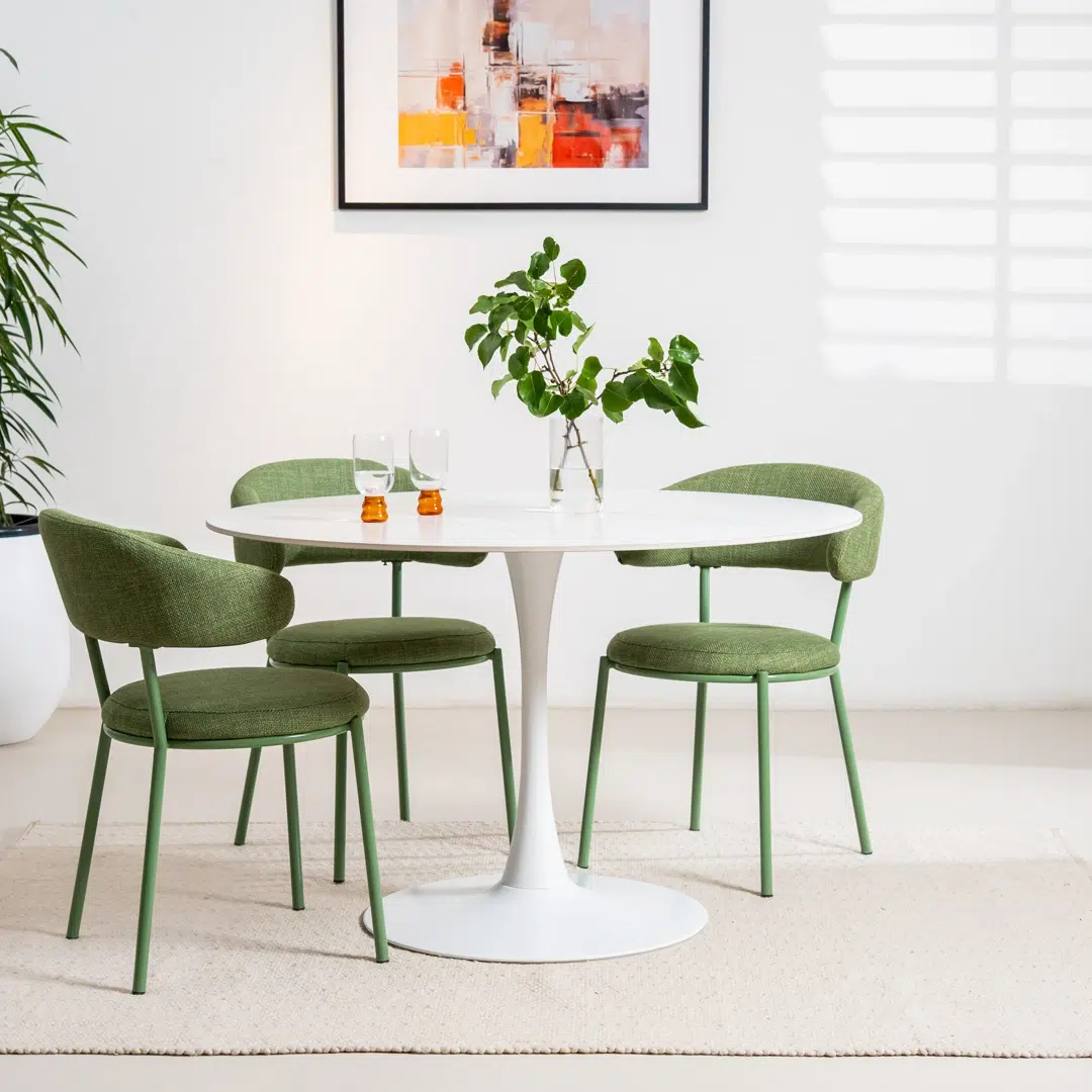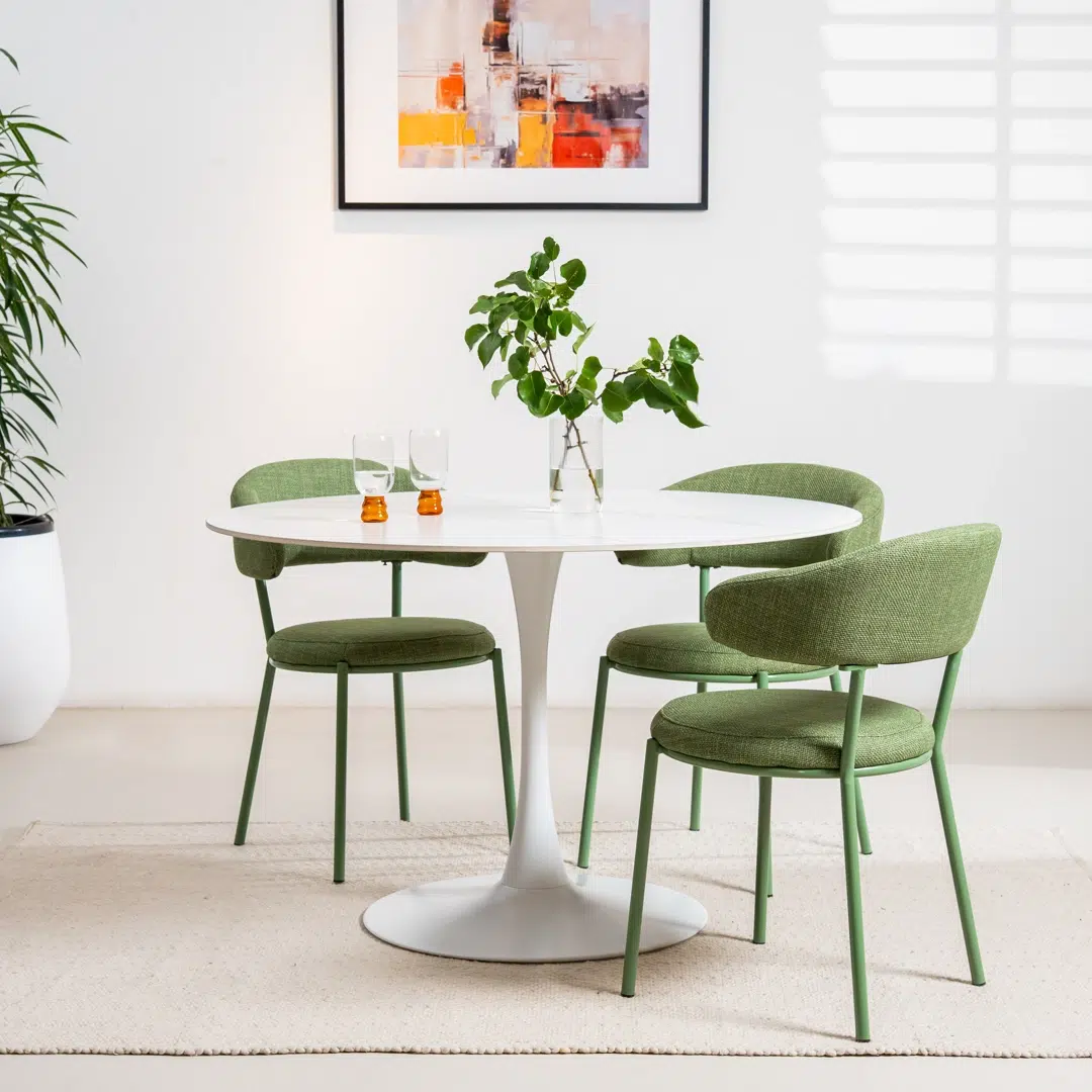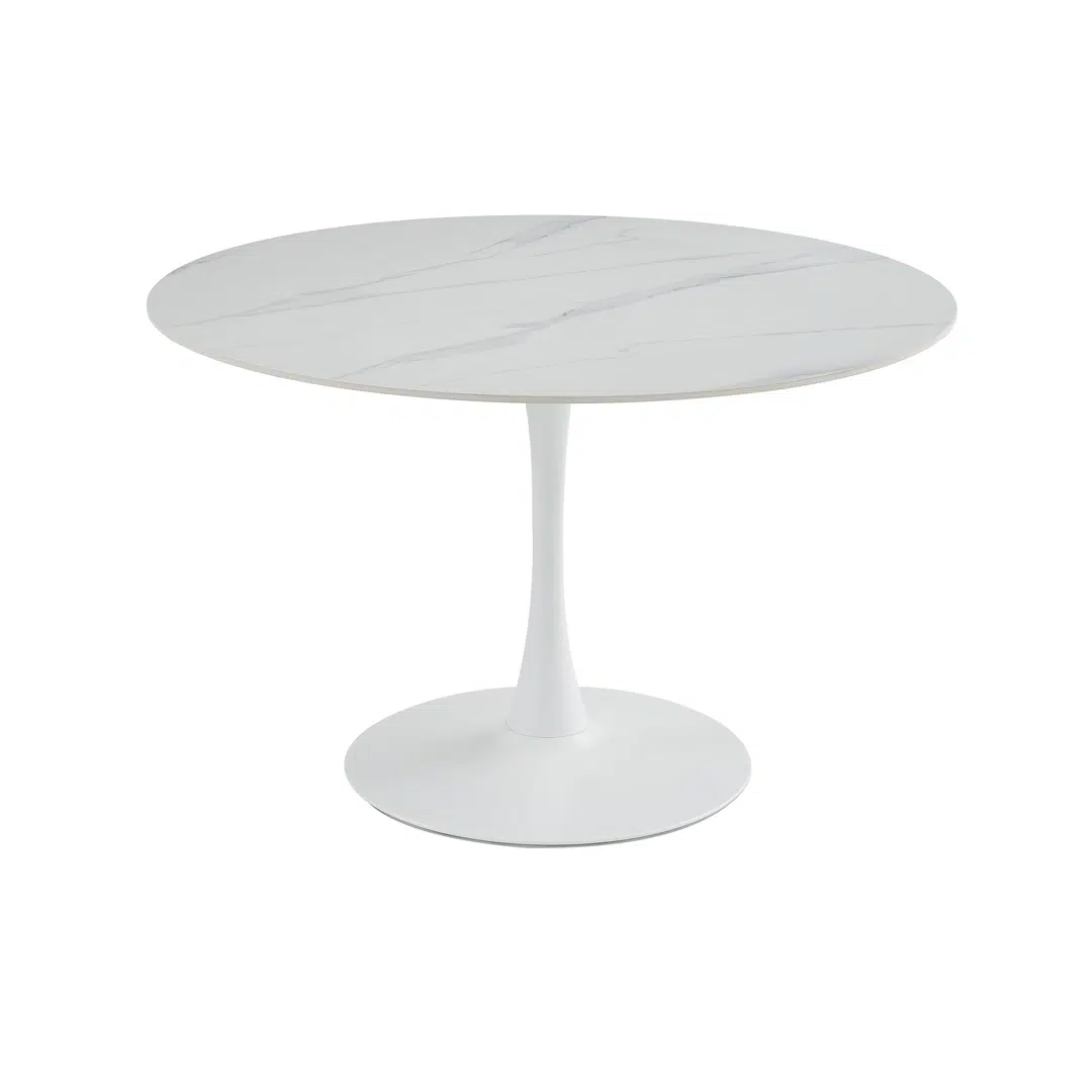The neutral palette and minimalist silhouette let you mix and match with velvet, wood, or acrylic dining chairs. Whether placed in a sunlit breakfast nook or a formal dining area, its adaptable design becomes a cohesive anchor for your personal style. Highlight it with pendant lighting or let it shine under natural window light for an airy ambiance.