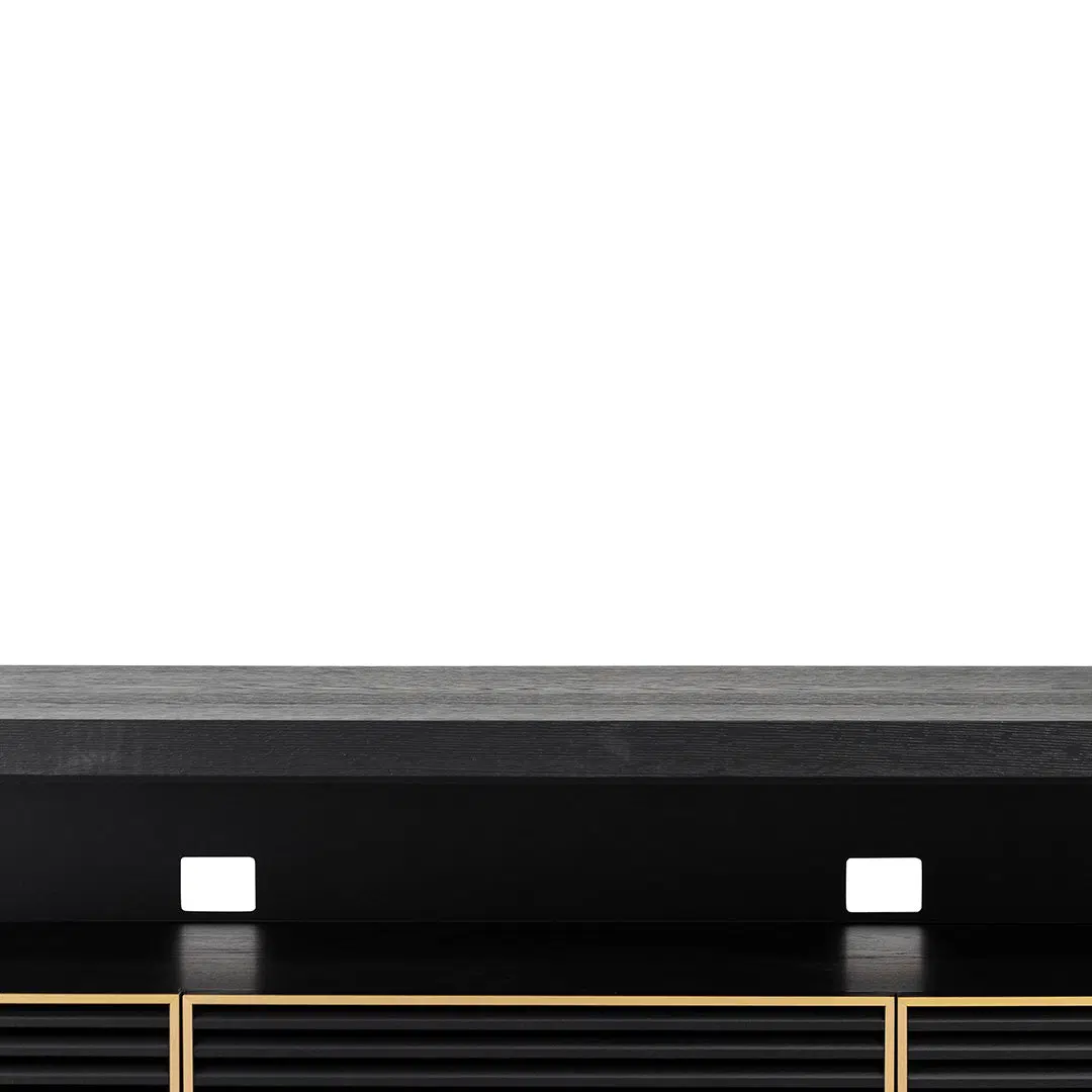 Designed with cable management in mind, the entertainment unit includes two strategically placed cable ports that help maintain a clean, clutter-free appearance. This thoughtful feature allows for seamless cable routing while preserving the unit’s polished aesthetic, whether housing a television or home theater setup.