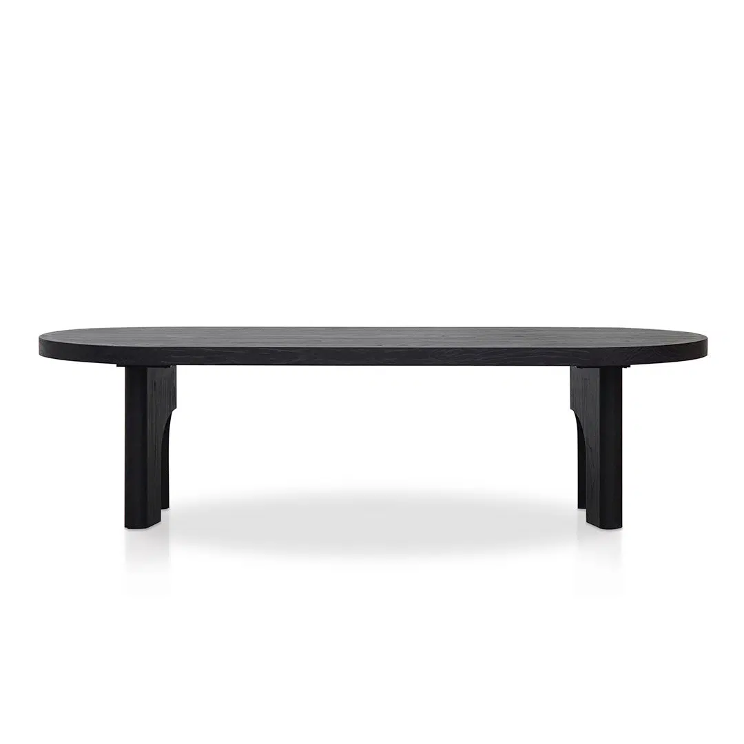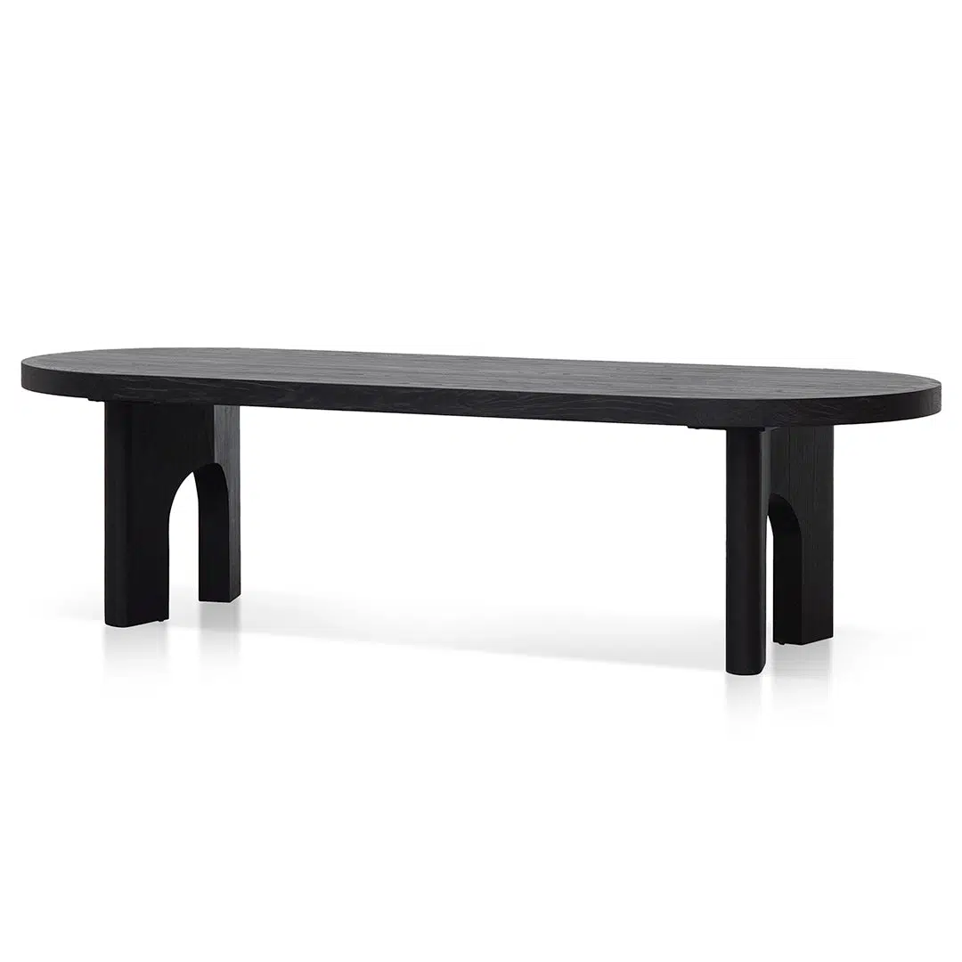 This 2.8m oval dining table captivates with its sweeping curves and bold, sculptural design, making it an instant statement piece for contemporary spaces. The rich black finish complements modern aesthetics while the elongated silhouette offers ample seating for gatherings or daily meals.