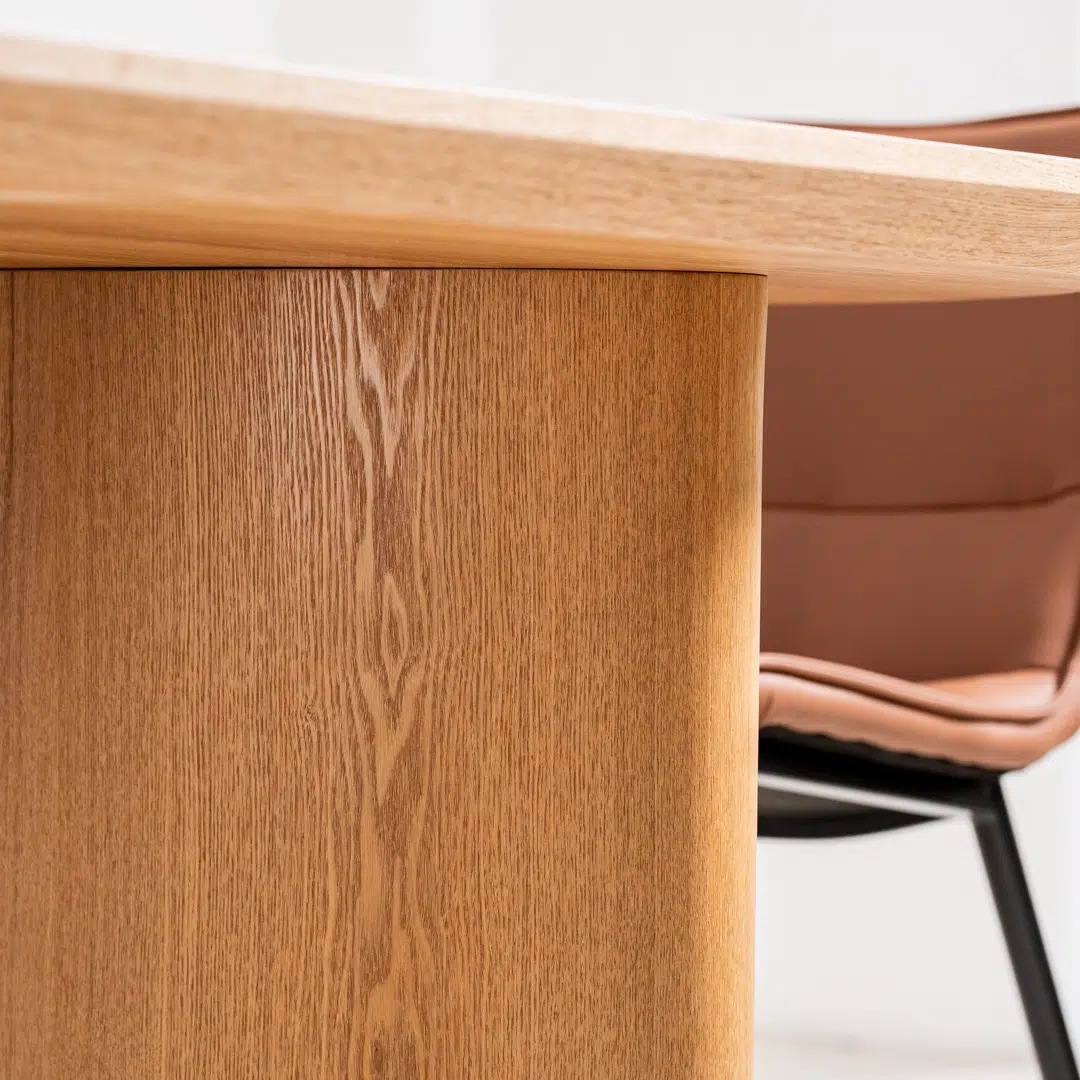 Discover the refined appeal of this ash veneer dining table, designed to elevate any dining space with its organic charm. Handcrafted from premium ash veneer, the tabletop reveals warm honey tones and delicate grain patterns that shift subtly in natural light. The matte finish enhances the wood’s texture while preserving its natural character, creating a sophisticated centerpiece that bridges traditional craftsmanship with modern minimalism.