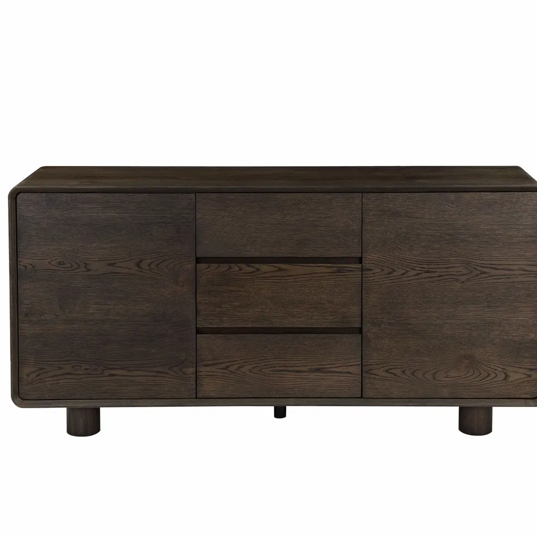This sophisticated sideboard combines rich, wild dark oak veneer with contemporary design to create a statement piece for any living space. The natural grain texture of the wood finish adds depth and warmth, complementing both traditional and modern interiors with effortless elegance.