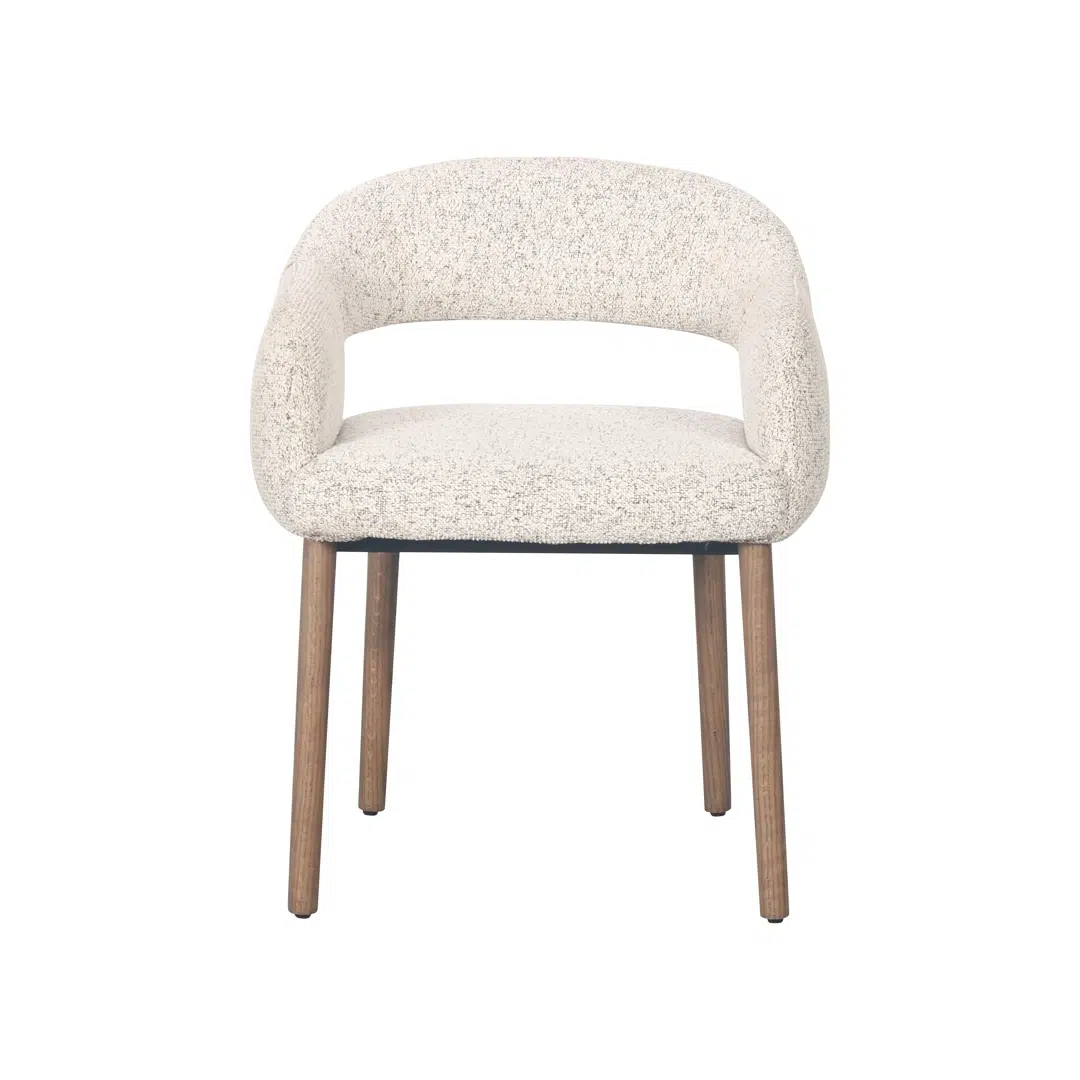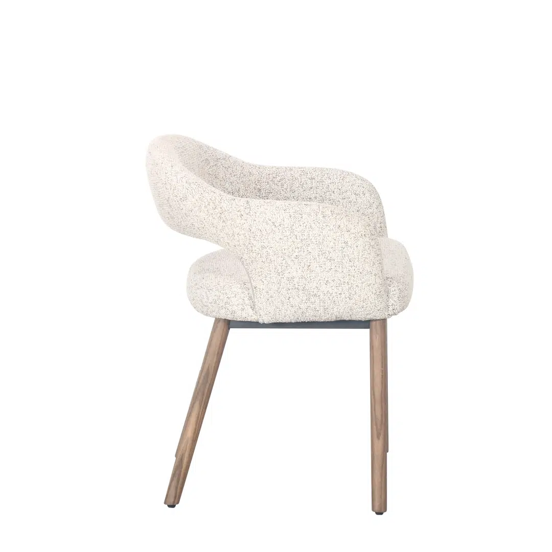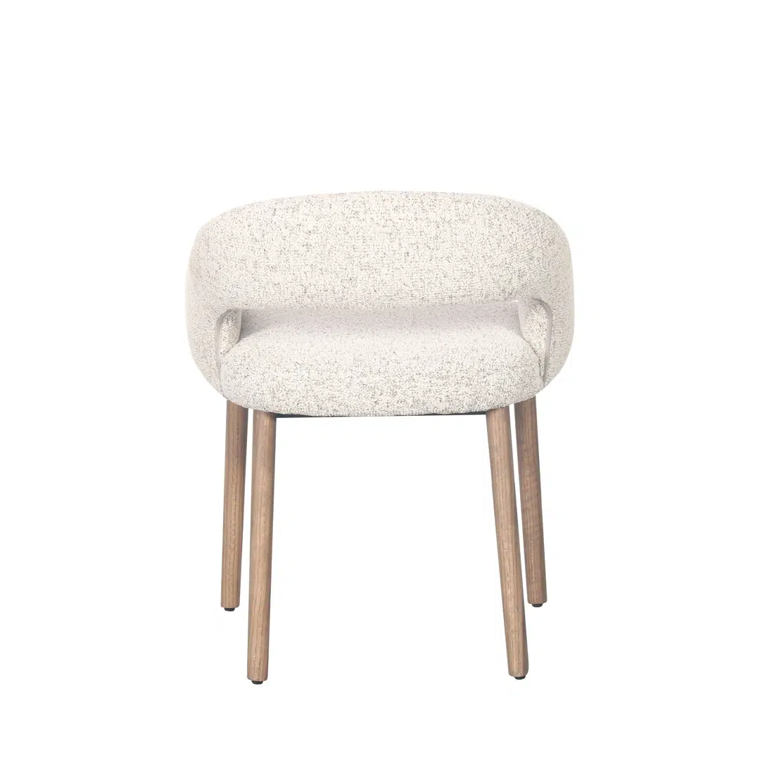 The textured fabric upholstery combines visual interest with remarkable durability, resisting everyday wear while maintaining its refined appearance. Designed for modern lifestyles, it requires minimal upkeep – simply wipe clean with a dry cloth and avoid abrasive materials to preserve its scratch-free finish. The solid oak frame provides lasting structural integrity while complementing the chair’s natural aesthetic.