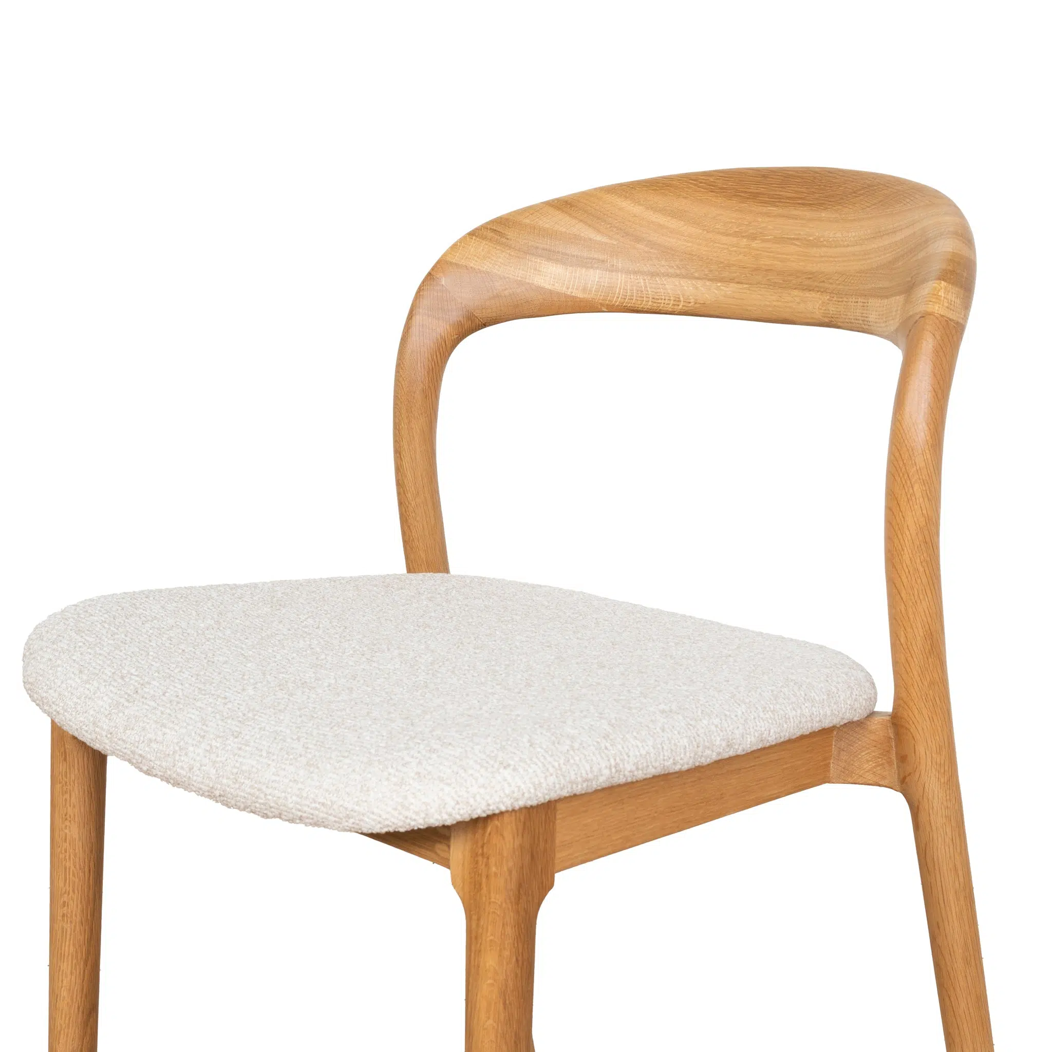 Crafted with durable natural finish wood frames, these chairs combine strength with aesthetic appeal. The 100% polyester fabric upholstery resists stains and wear, making it practical for daily use. The firm foam padding maintains its shape without excessive compression, while the wood patterns create a textured visual contrast that enhances depth.