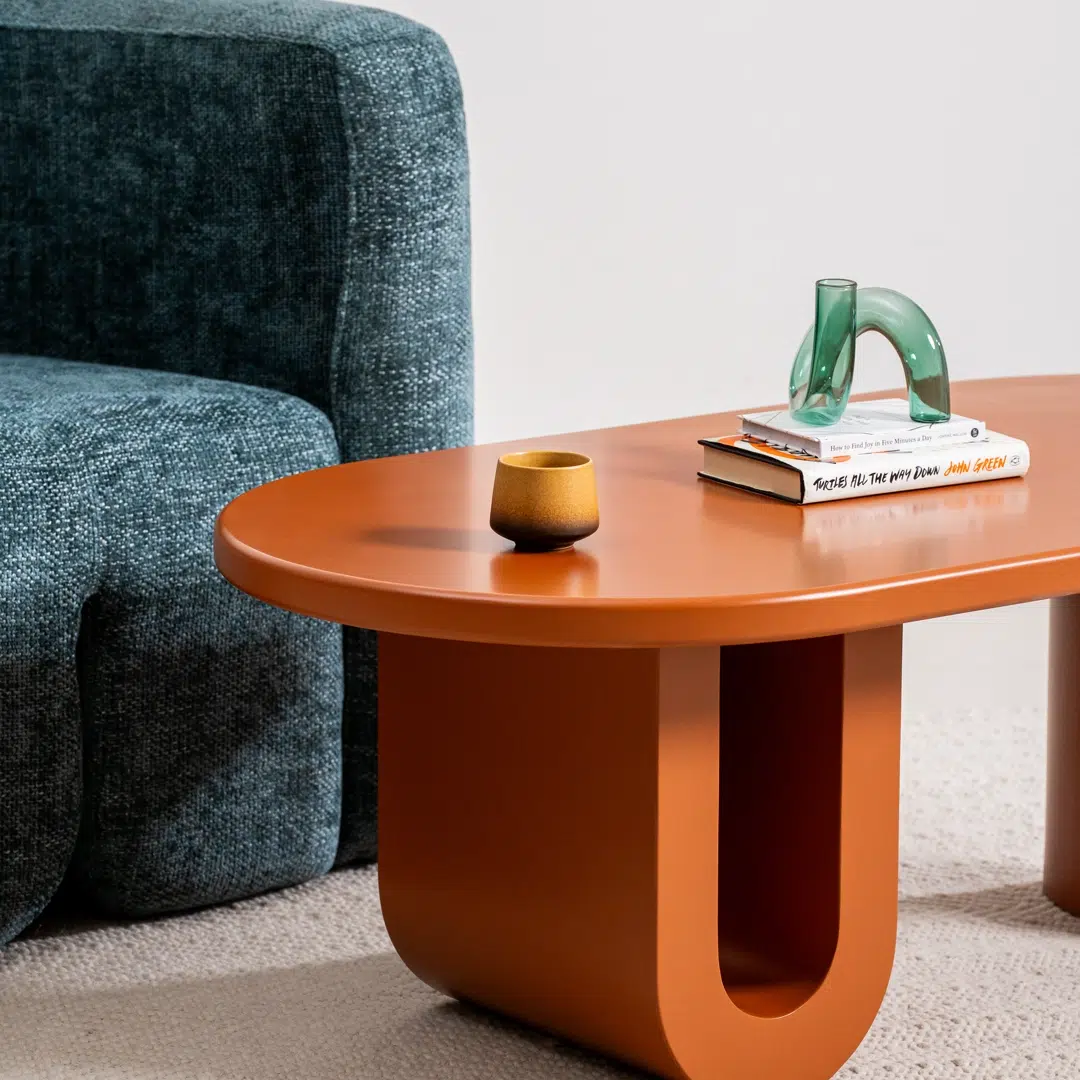 This coffee table stands out with bold architectural lines and a lively color palette, instantly becoming the centerpiece of any room. Its geometric silhouette balances sharp angles with smooth curves, creating a striking look that works in both minimalist and eclectic interiors.