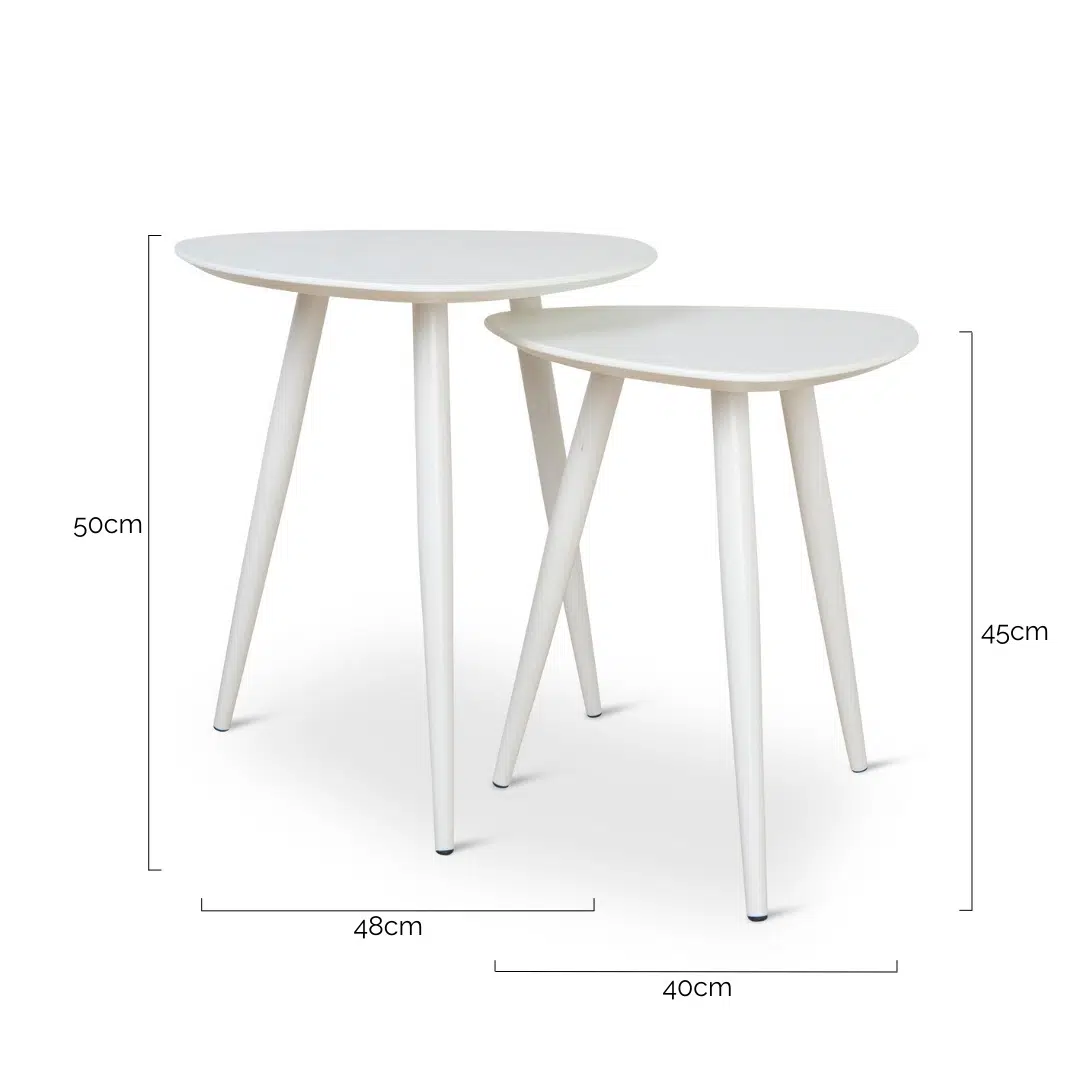 Crafted from sturdy MDF with a luxurious white oak veneer finish, these tables feature powder-coated white metal legs that add a contemporary edge. Rubber feet protectors ensure stability and prevent floor scratches, making them ideal for any room.