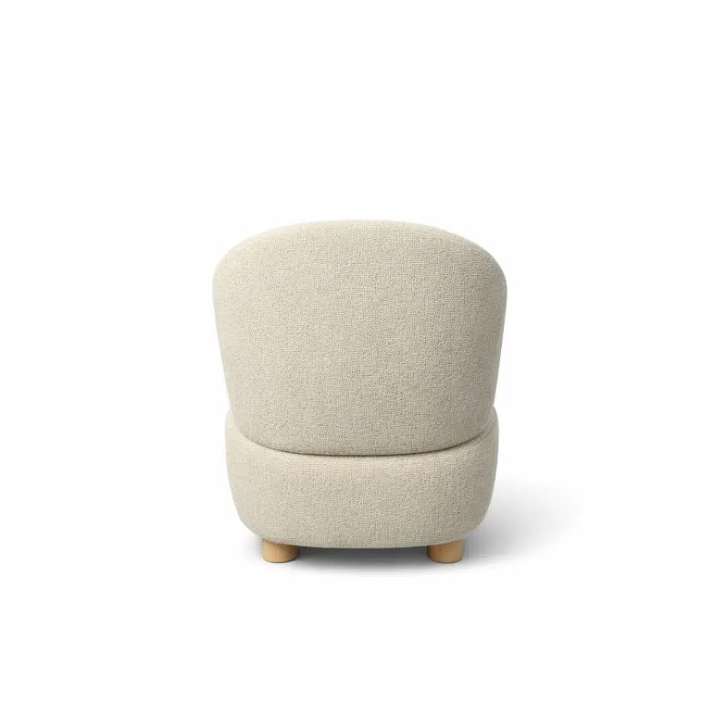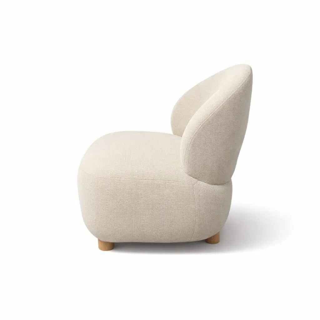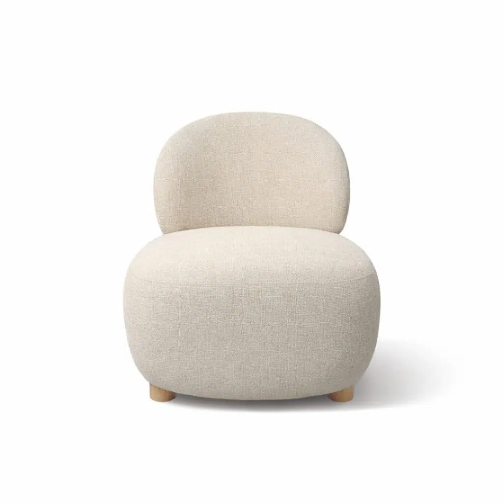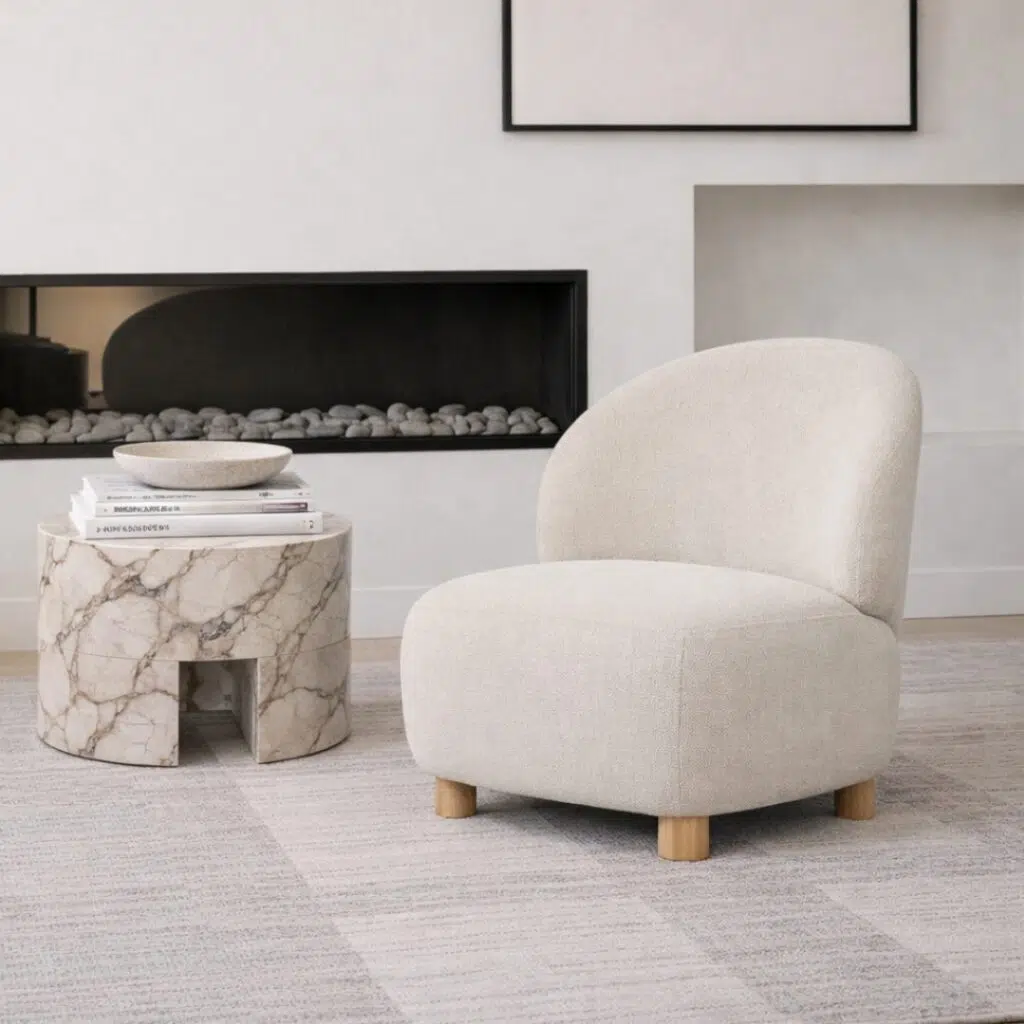 The Coco Accent Chair features a softly contoured silhouette in beige, adding subtle sophistication and visual interest to modern living spaces.