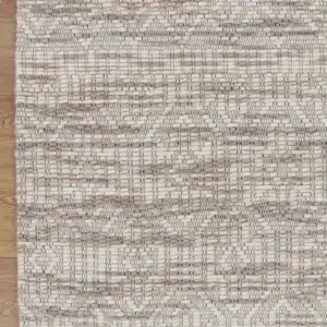 The Copacabana rug features a refined palette of natural and neutral hues, making it suitable for modern, coastal, tribal, and bohemian spaces. Its understated tones complement various furnishings with ease.