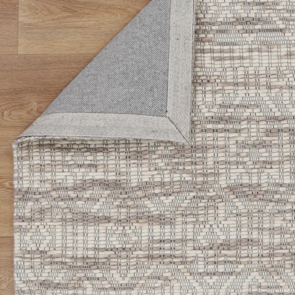 Constructed from 80% wool and 20% polyester with a cotton canvas backing, the rug balances softness, strength, and practicality. Its flatwoven loop structure ensures long-lasting use and effortless maintenance.