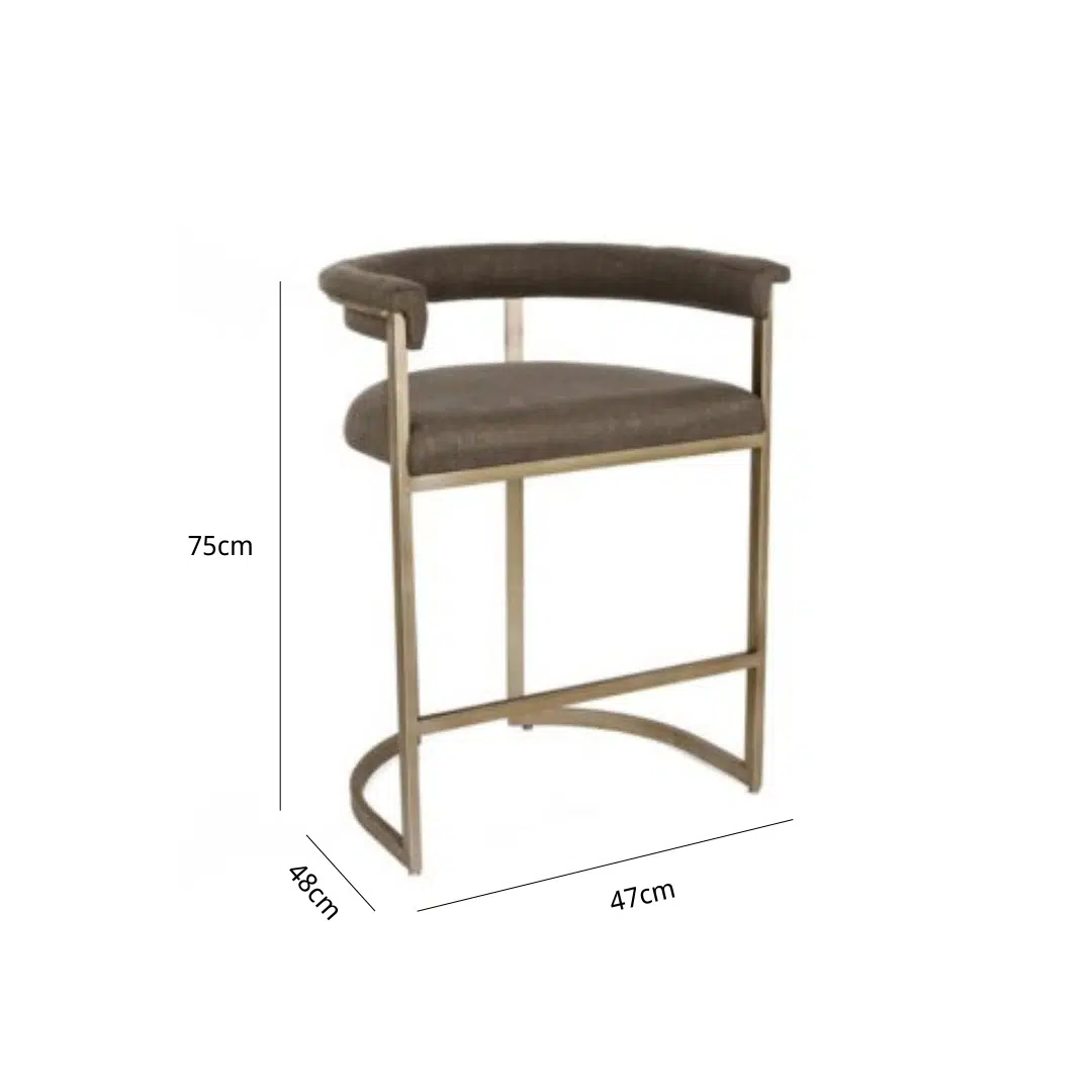 The Dino Kitchen Stool adds a bold yet refined touch to kitchens and counter-height spaces. Upholstered in luxurious chocolate linen, its curved backrest and cushioned seat create an inviting and comfortable seating experience.