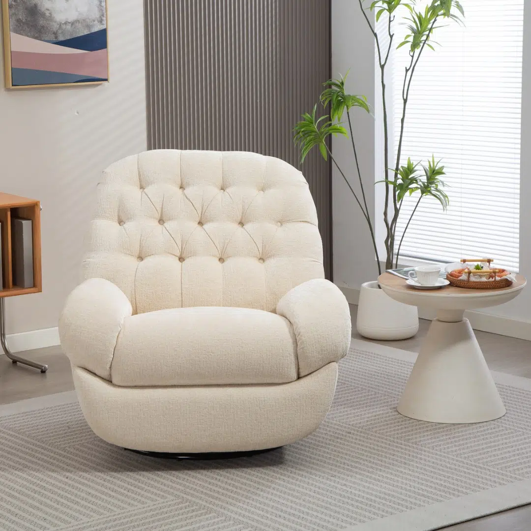 This accent chair features a soft polyester corduroy fabric that provides a luxurious feel with every touch. The textured surface adds visual depth while the thick back cushion delivers exceptional comfort, making it ideal for relaxation in living rooms, home offices, or reading nooks.