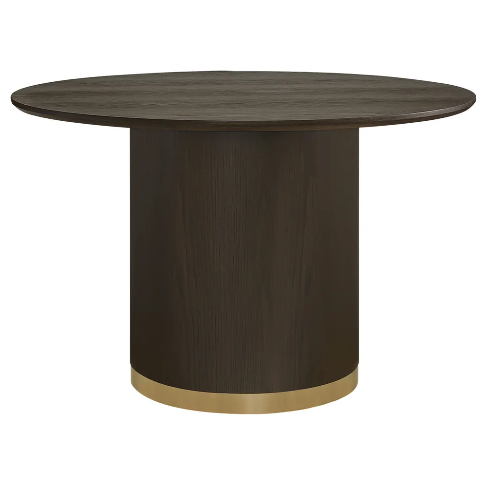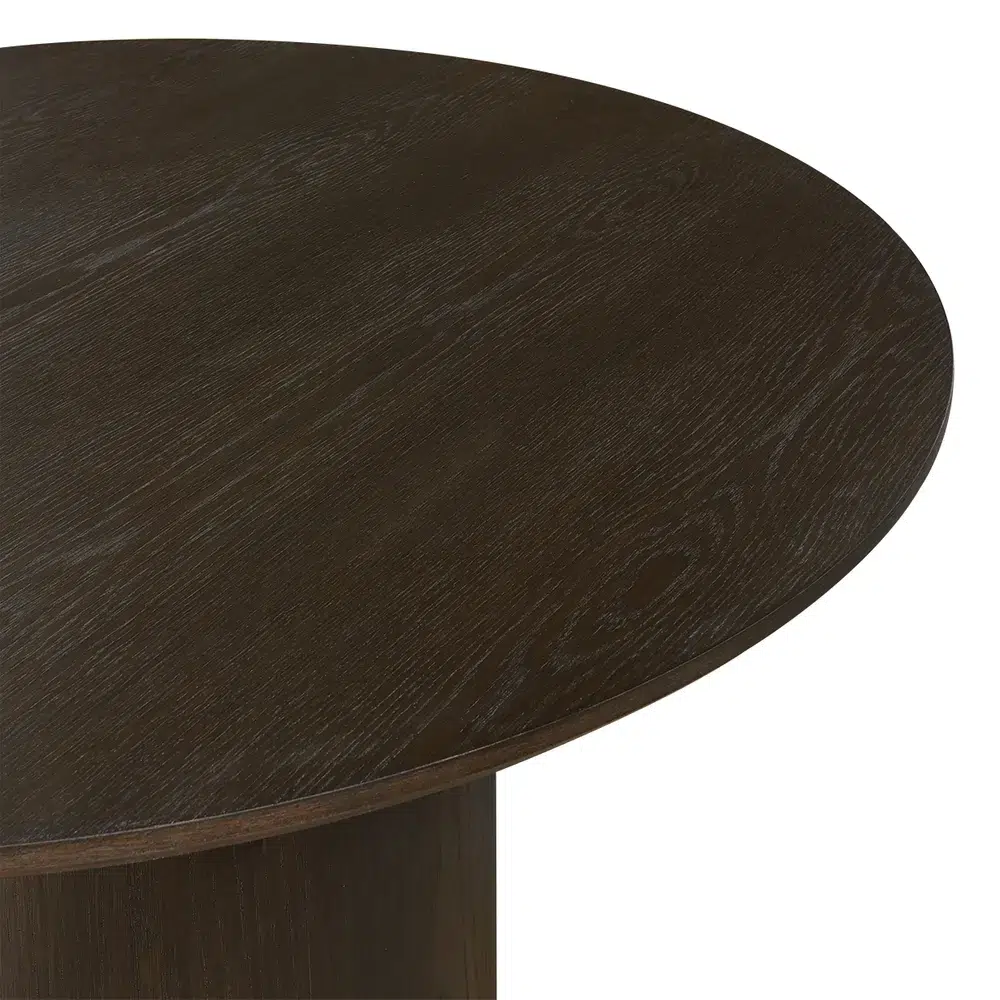 Thanks to its smooth, high-quality finish, this dining table is easy to clean and maintain—simply wipe with a damp cloth to keep it looking pristine. Its understated design and neutral smoked oak tone make it highly versatile, pairing seamlessly with a wide range of chair styles, from upholstered seats to industrial metal frames, in both transitional and contemporary interiors.
