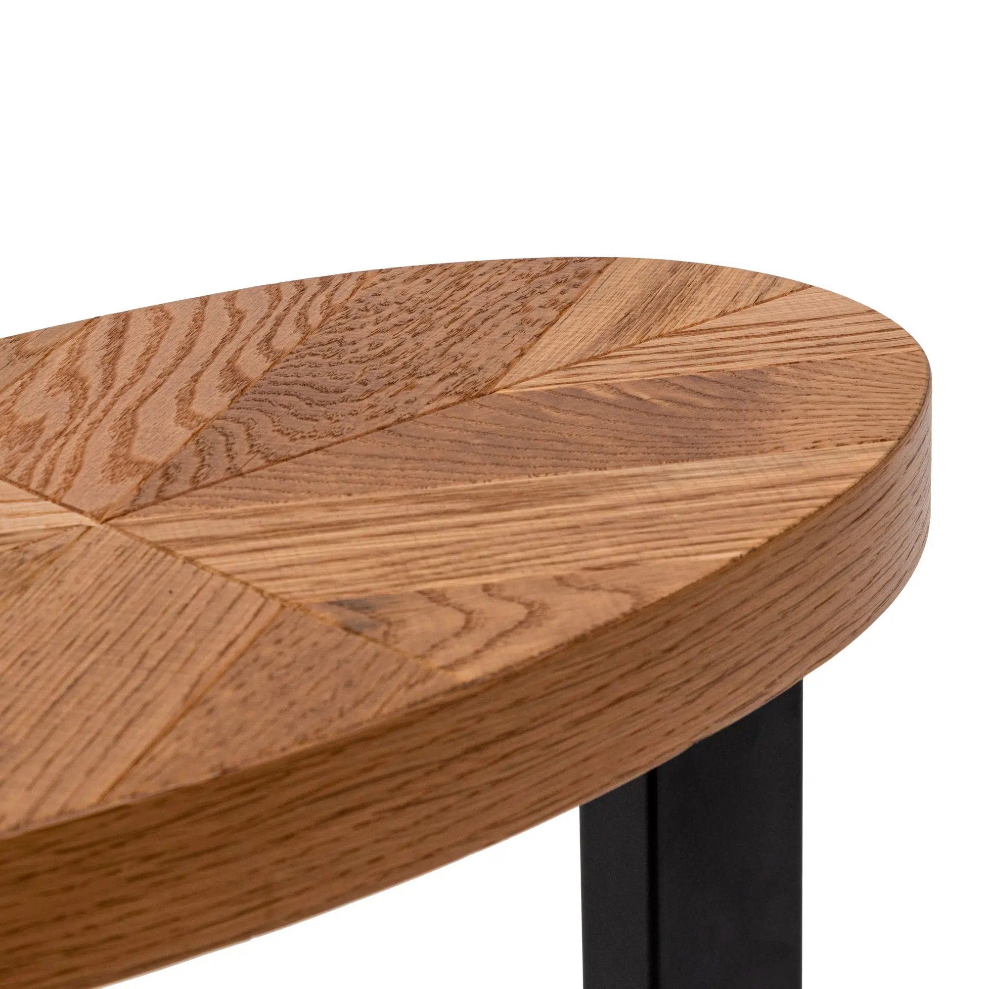 Crafted with a powder-coated peppercorn metal frame, this table resists scratches and wear for long-lasting use. The dark, matte finish contrasts beautifully with the oak-patterned surface, adding depth to its visual appeal. Perfect for high-traffic areas like living rooms or entryways where durability meets aesthetics.