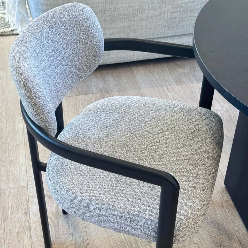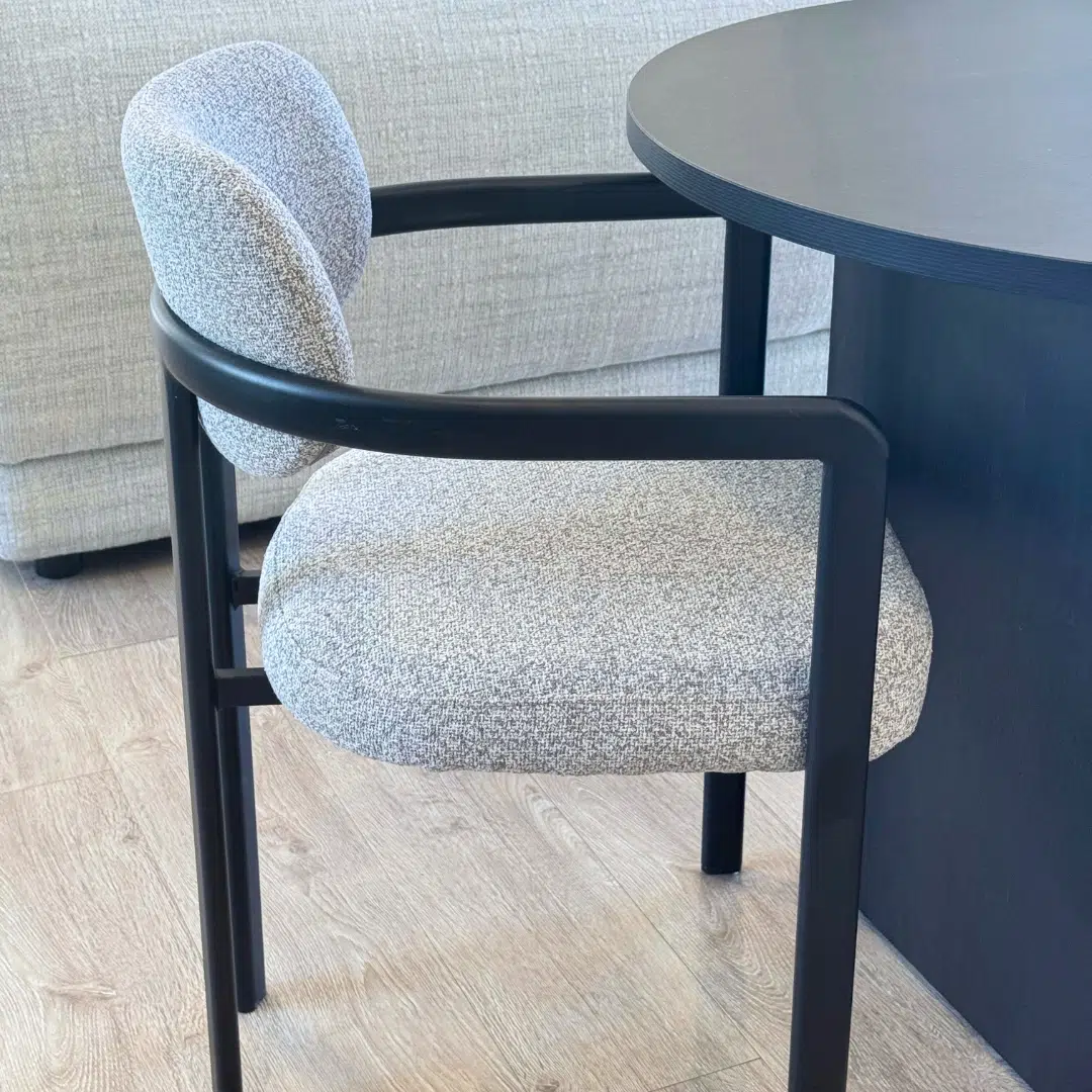 Combine style and comfort in daily meals. Lean back on the soft grey upholstery and let the sturdy frame support long dinners effortlessly.