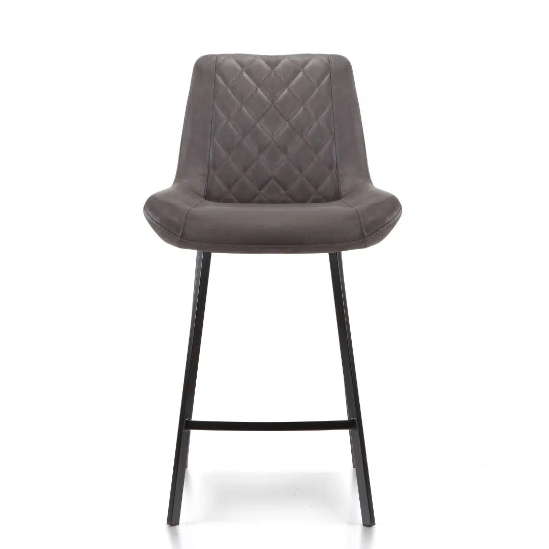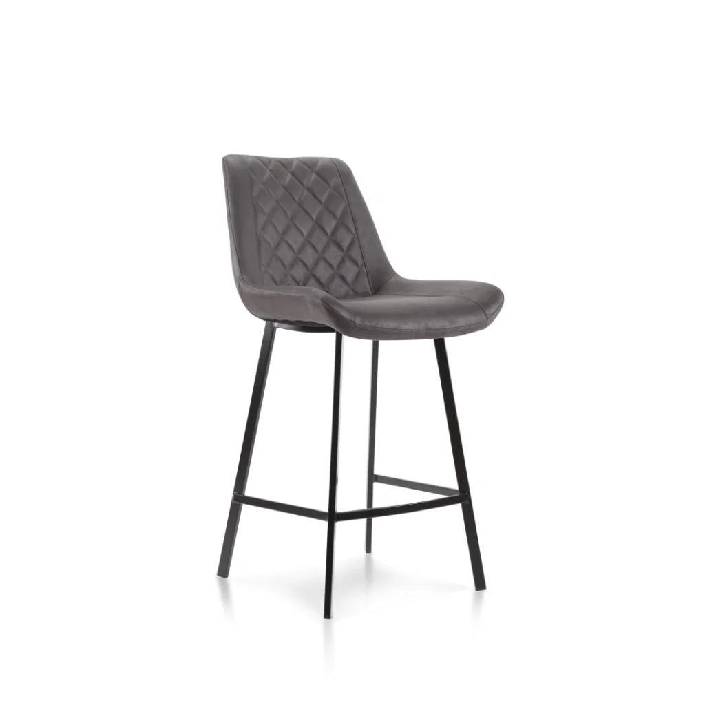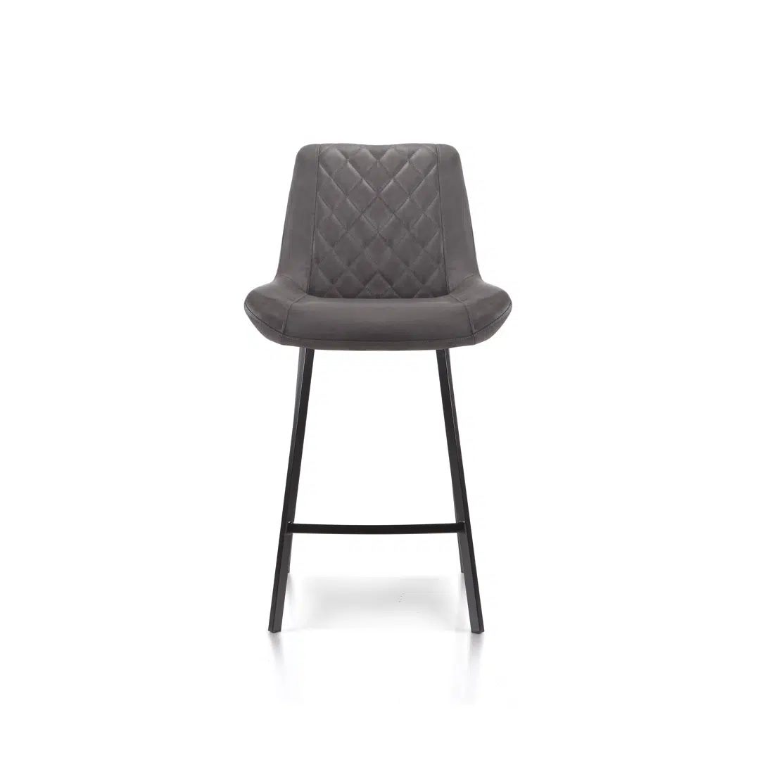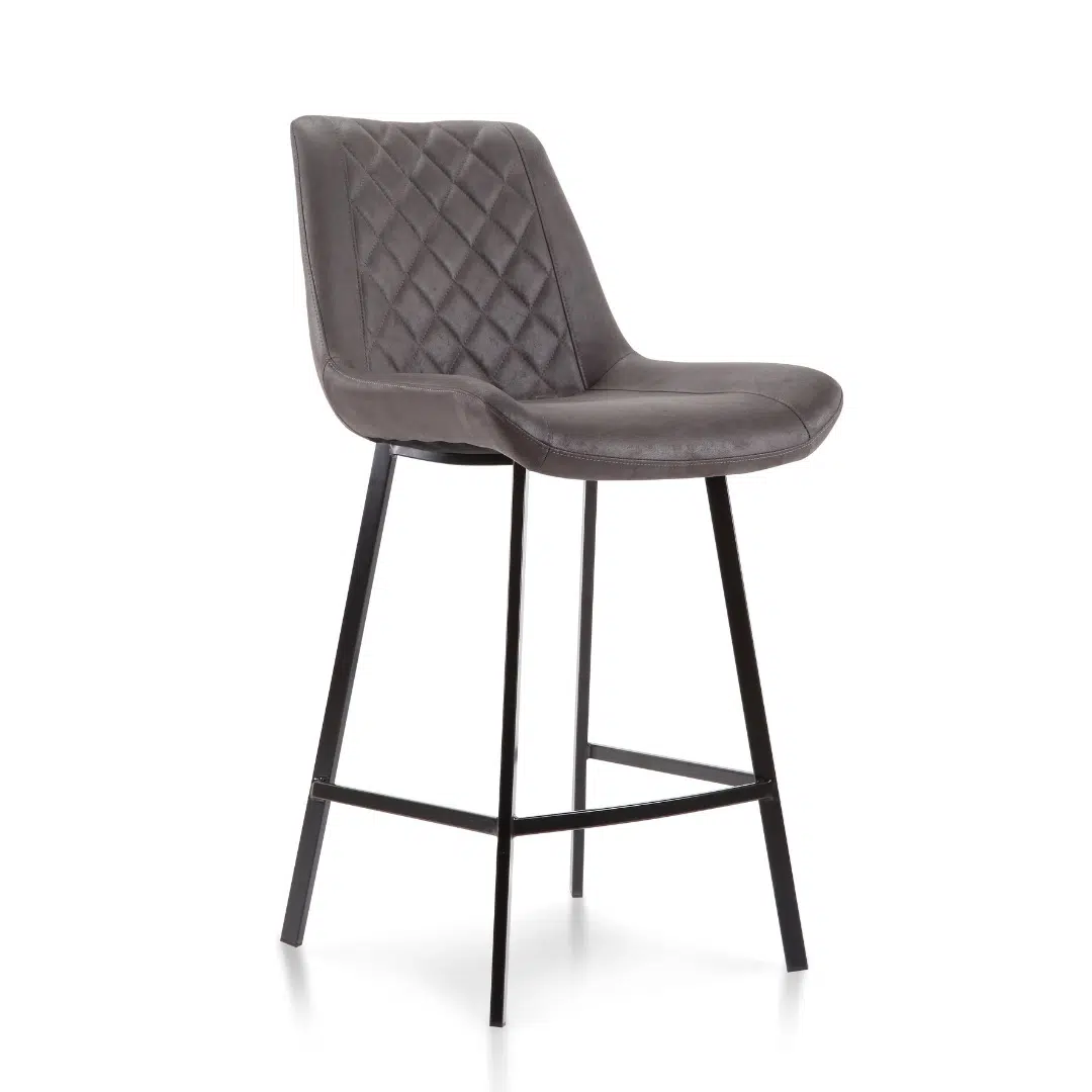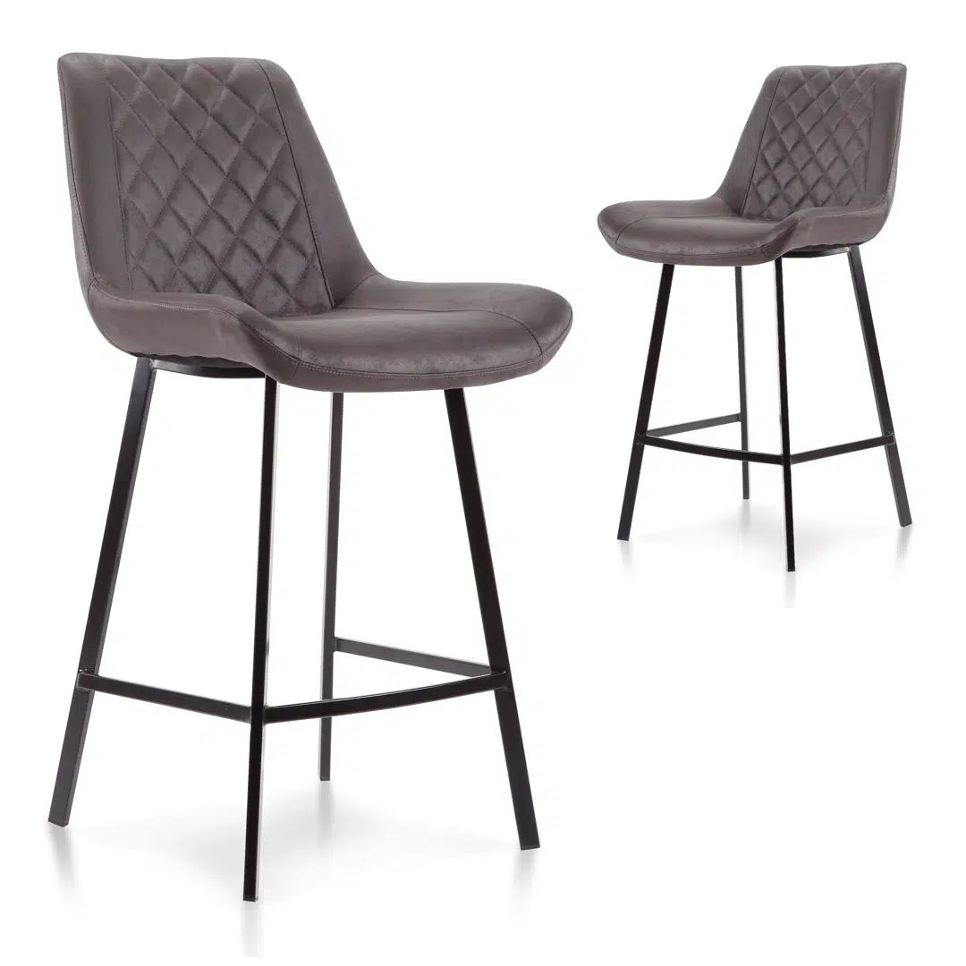 This bar stool set reimagines mid-century charm with a contemporary twist, featuring diamond-stitched ultra-suede upholstery in versatile charcoal gray. The striking textured backrest adds depth to any space, while the black powder-coated metal frame delivers industrial-chic durability. Perfect for creating a retro-modern focal point in kitchens, bars, or home lounges.