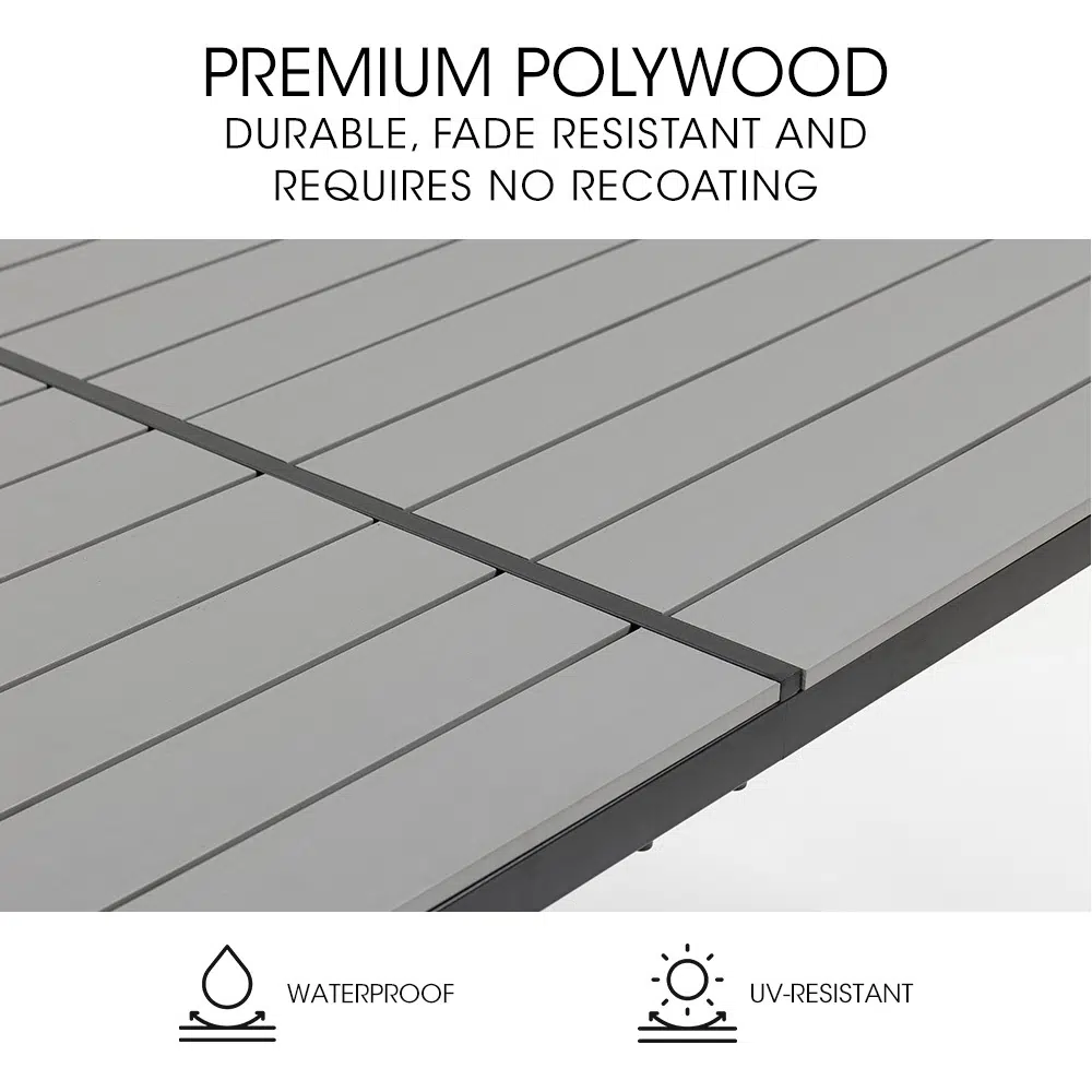 Made from premium polywood, the table is highly durable, fade-resistant, and requires no upkeep, making it a low-maintenance solution for long-term outdoor use.