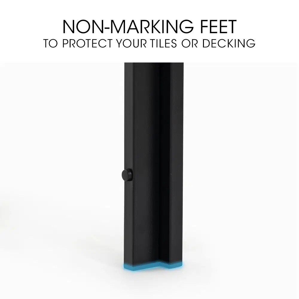 The rust-resistant powder-coated steel frame provides strength and stability, while the non-marking feet protect delicate surfaces such as tiles and decking.