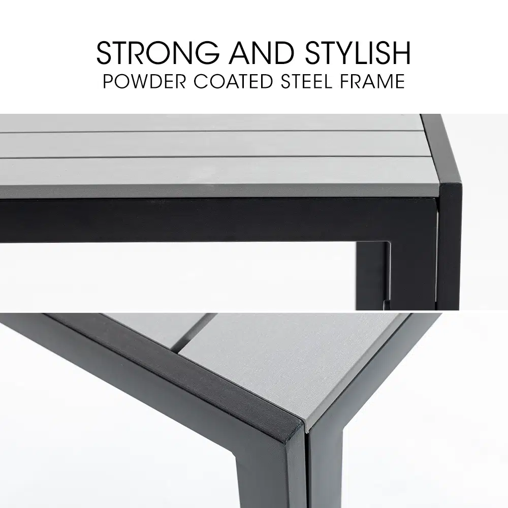 Pair this table with the matching outdoor dining chairs to create a cohesive and sophisticated outdoor dining setup. The modern aesthetic complements a range of decor styles, from contemporary to rustic, while the neutral black and grey color options allow seamless integration into any outdoor space.