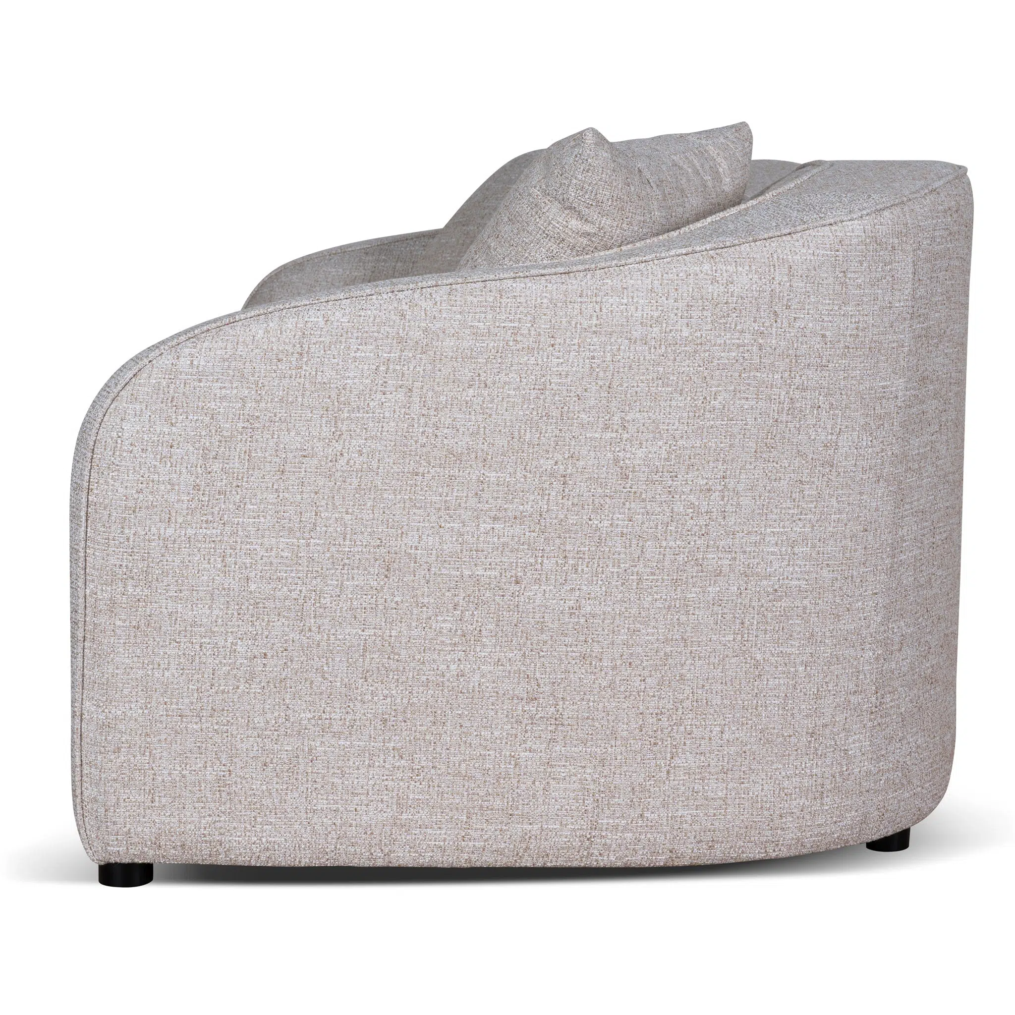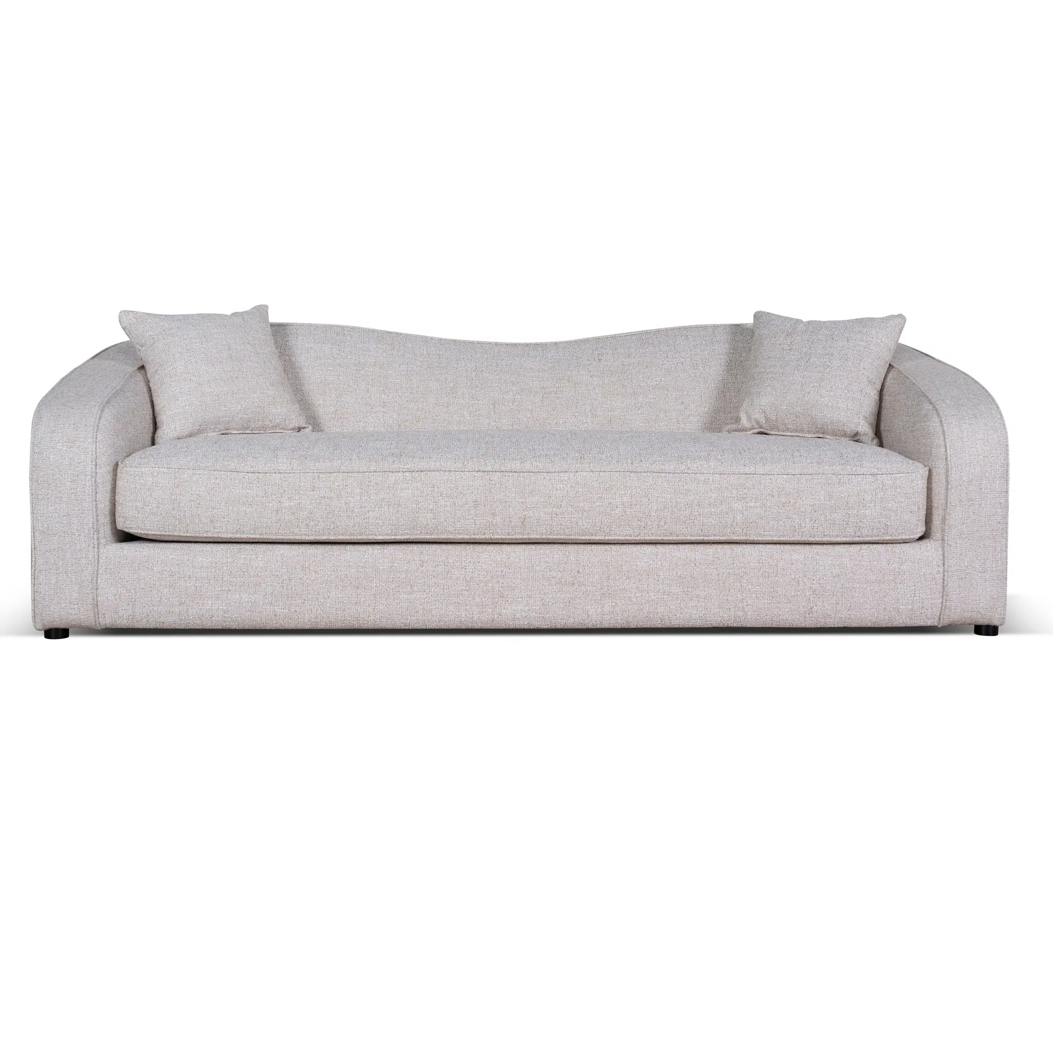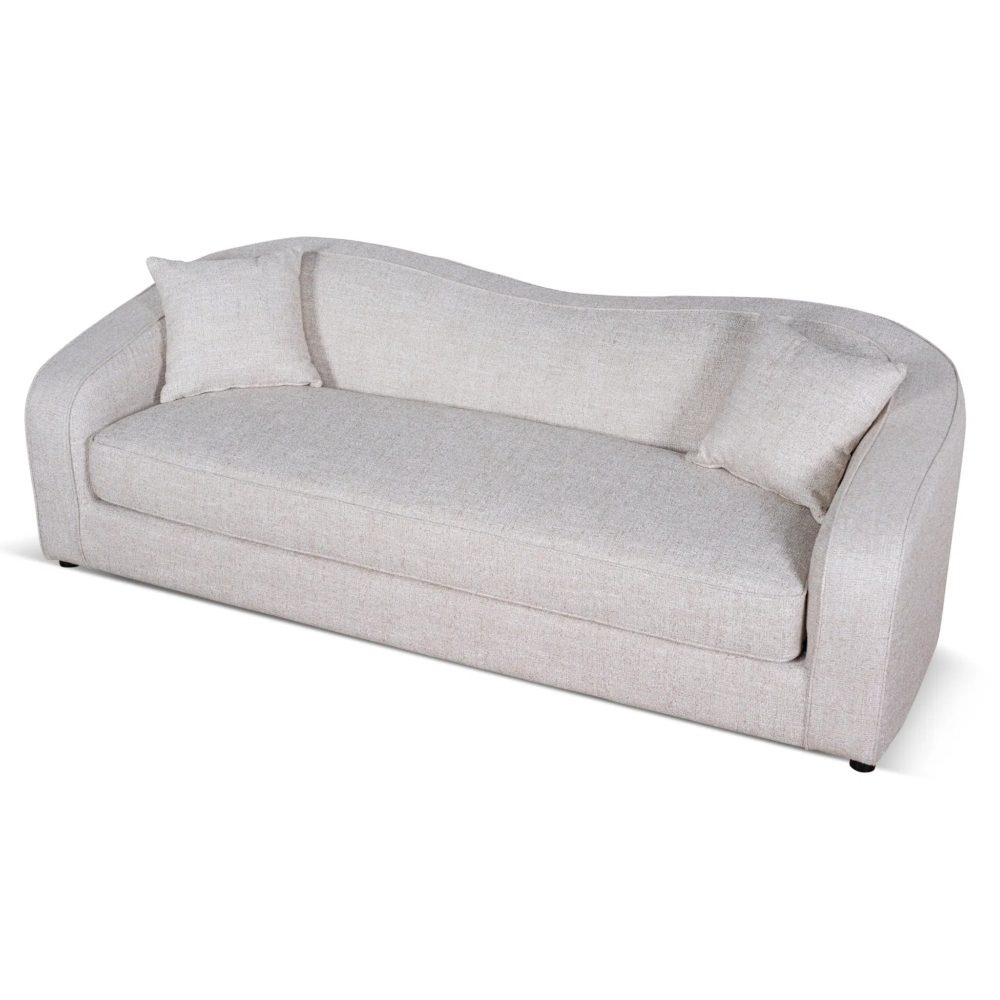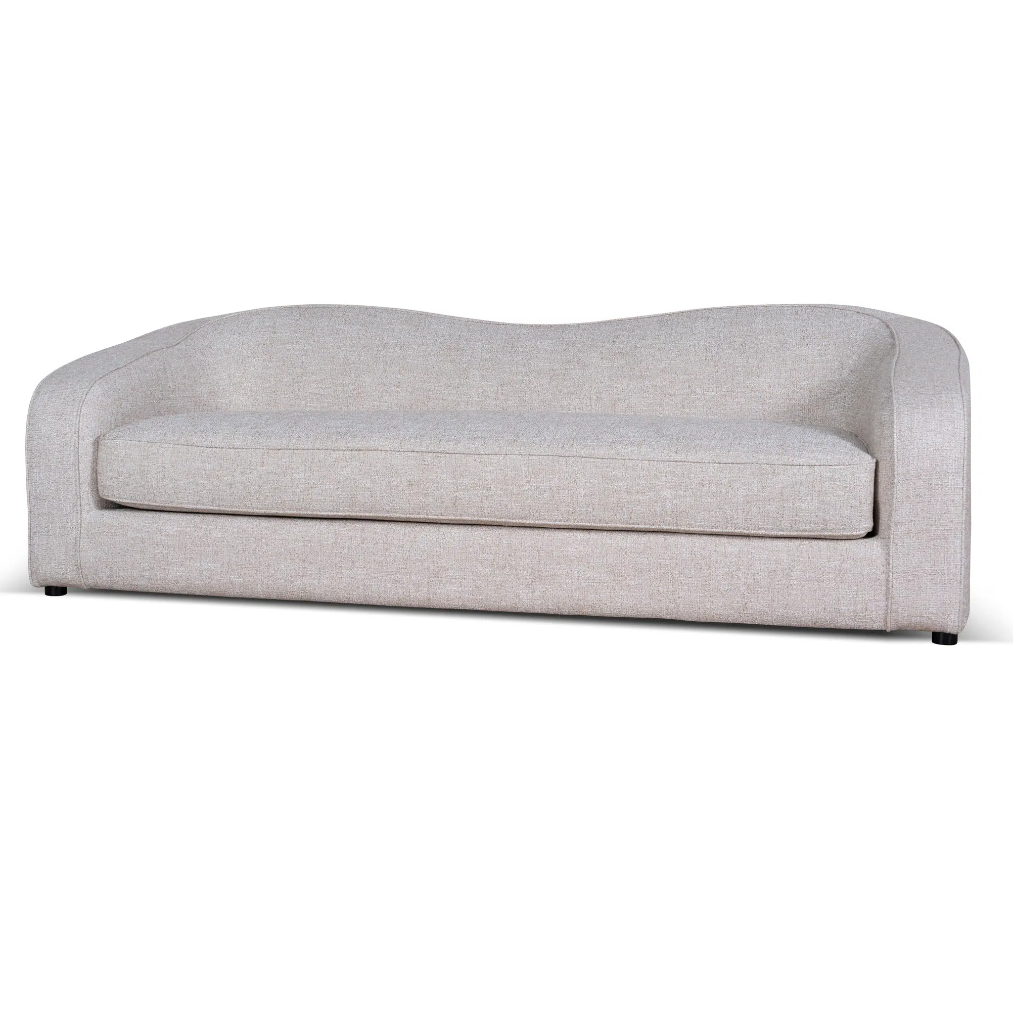 This 3-seater sofa combines clean, curved lines with balanced proportions to create a perfect harmony between contemporary aesthetics and everyday functionality. Its pale beige polyester upholstery adds a soft, neutral tone that complements both minimalist and eclectic interiors. Whether placed as a focal point or paired with accent chairs, this sofa effortlessly elevates living rooms, lounges, or open-concept spaces.