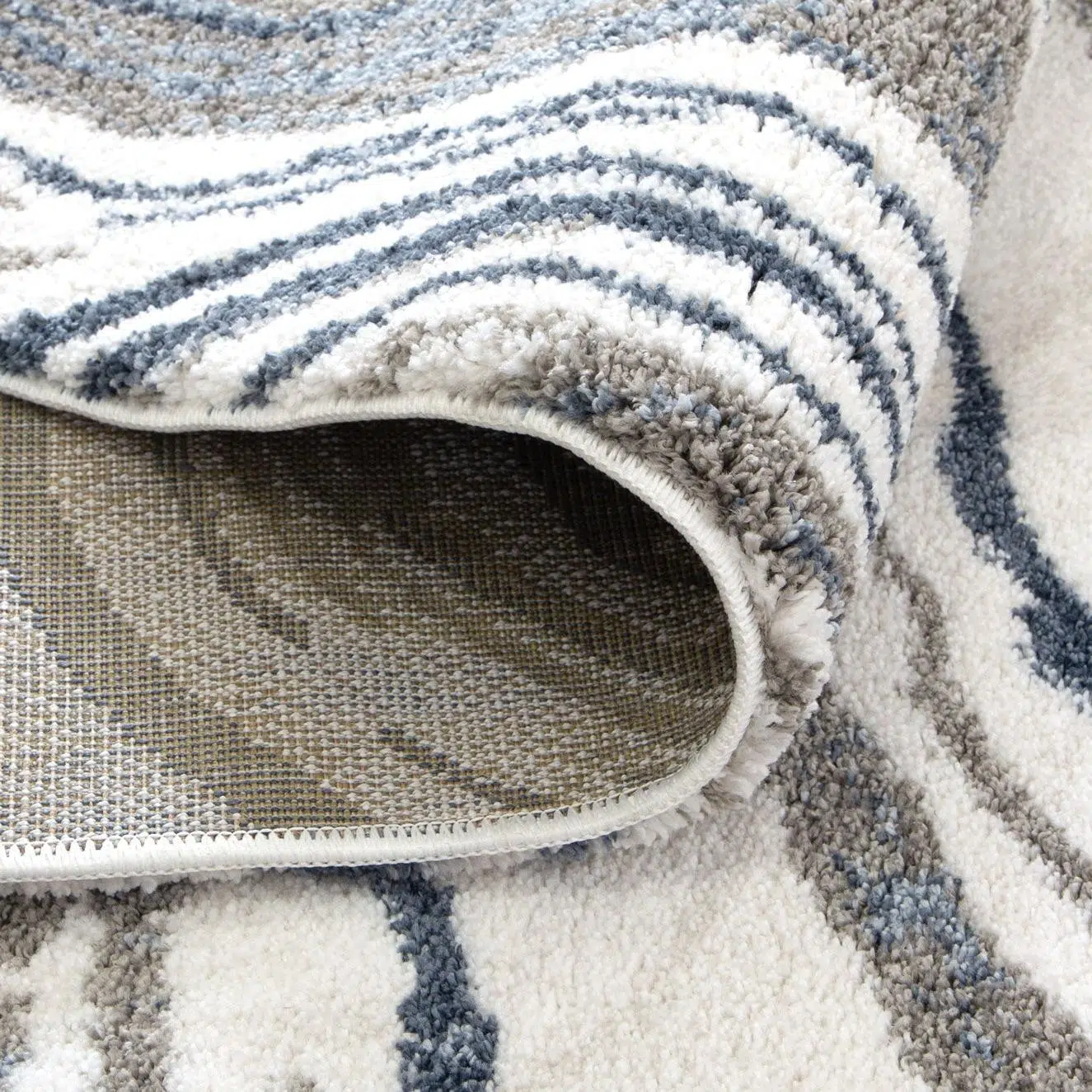 With its versatile neutral palette ranging from warm beiges to deep indigos, this rug serves as both decorative accent and functional floor covering. The low-maintenance polyester composition allows easy cleaning with just a damp cloth, making it ideal for high-traffic areas like living rooms and entryways. Its 15mm pile height maintains visual openness in smaller spaces while still providing the same level of comfort as thicker wool rugs.