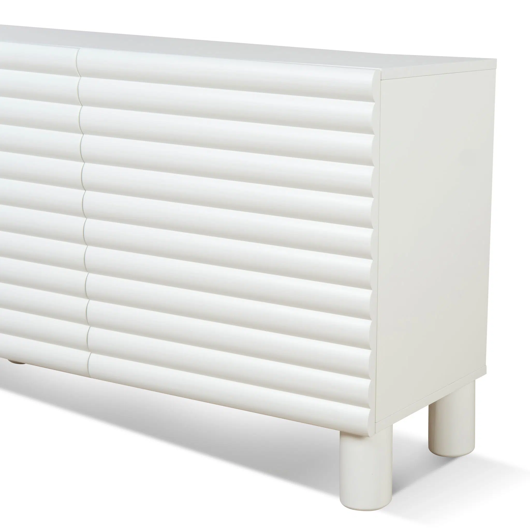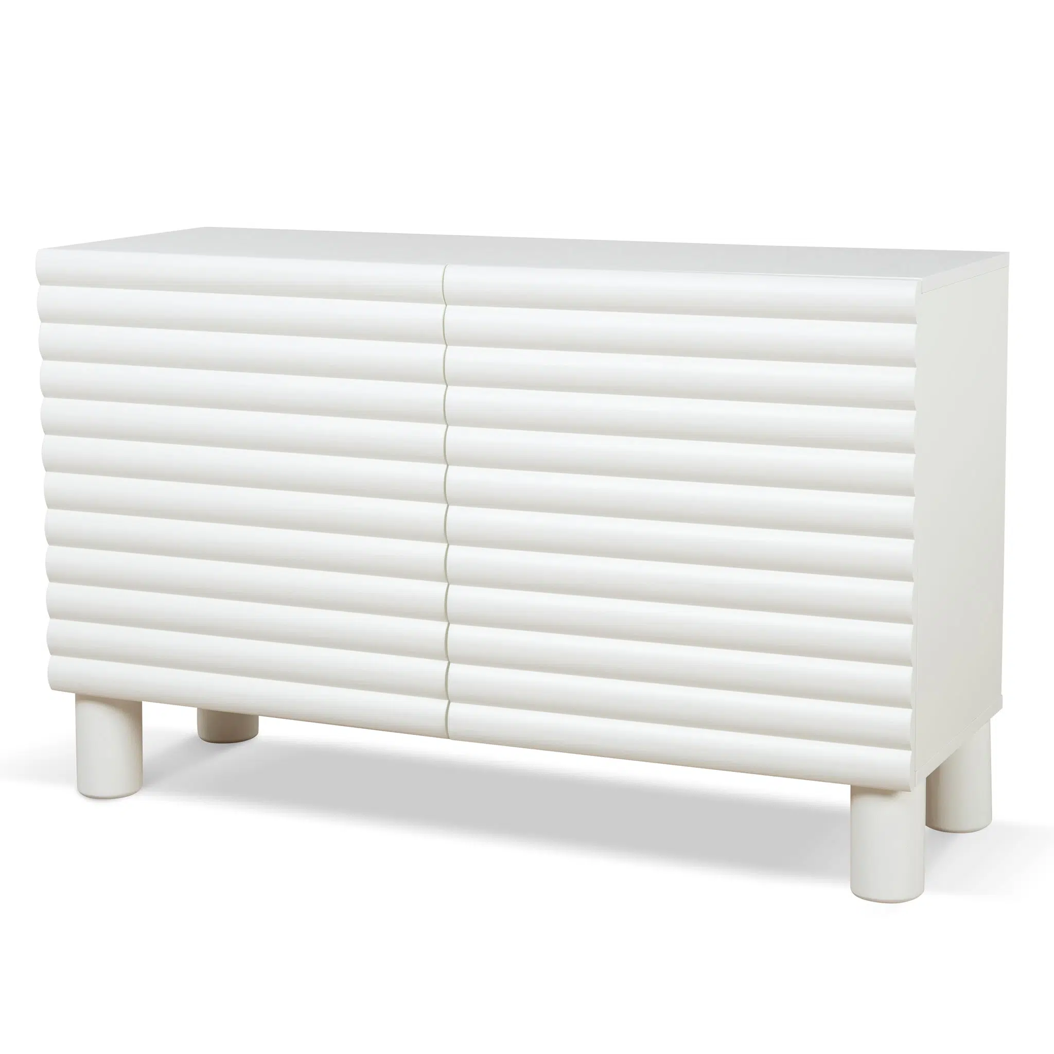 Bring effortless sophistication to your home with the 1.2m Sideboard Unit. Designed for compact living areas, this stylish storage piece is the perfect blend of refined craftsmanship and everyday functionality. The ribbed front panel detailing and rounded solid beech wood legs add a designer touch to any interior.