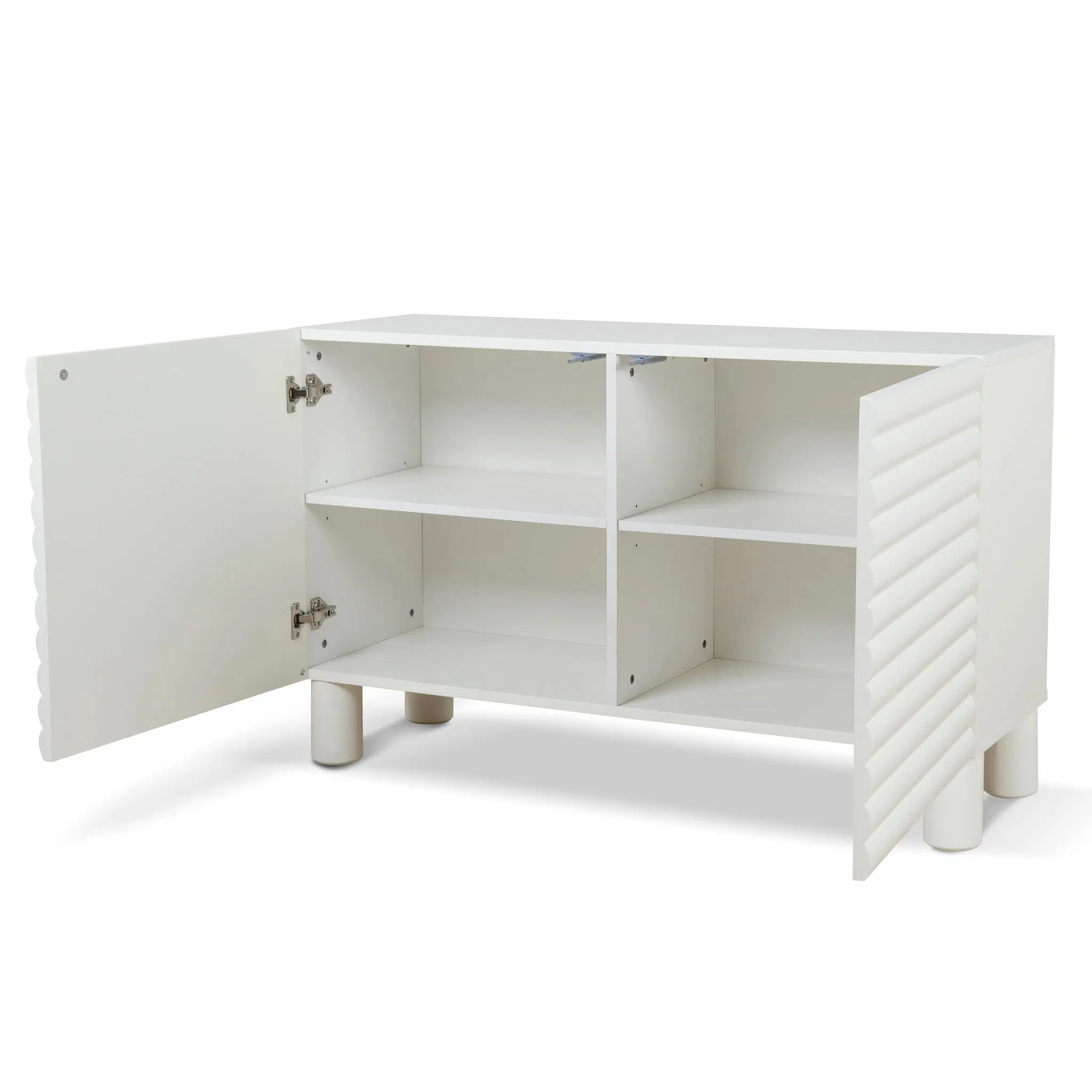 Whether you’re displaying curated decor or tucking away essentials, this unit offers smart organization with four internal compartments across two shelves. Each shelf provides generous space — the top measures 57cm (W) x 38cm (D) x 26.7cm (H), while the bottom offers 57cm (W) x 38cm (D) x 28.2cm (H) — keeping your items neatly stored and easily accessible.