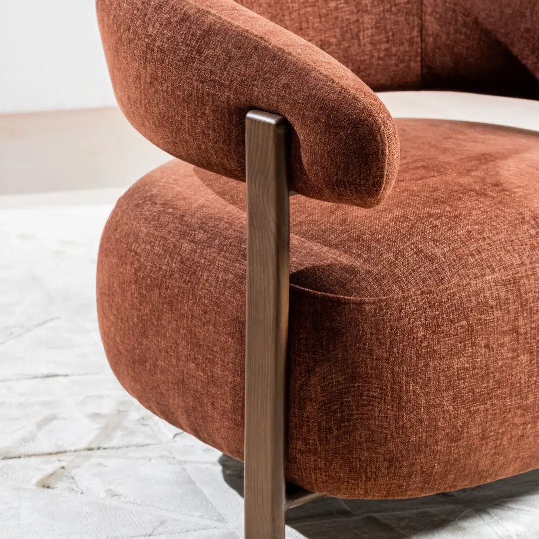 Wrapped in rich, textured rust chenille fabric, this chair adds warmth and tactile comfort to any space. The soft, woven surface invites touch while introducing depth and visual interest to modern or traditional interiors, creating an instant focal point that elevates your decor.