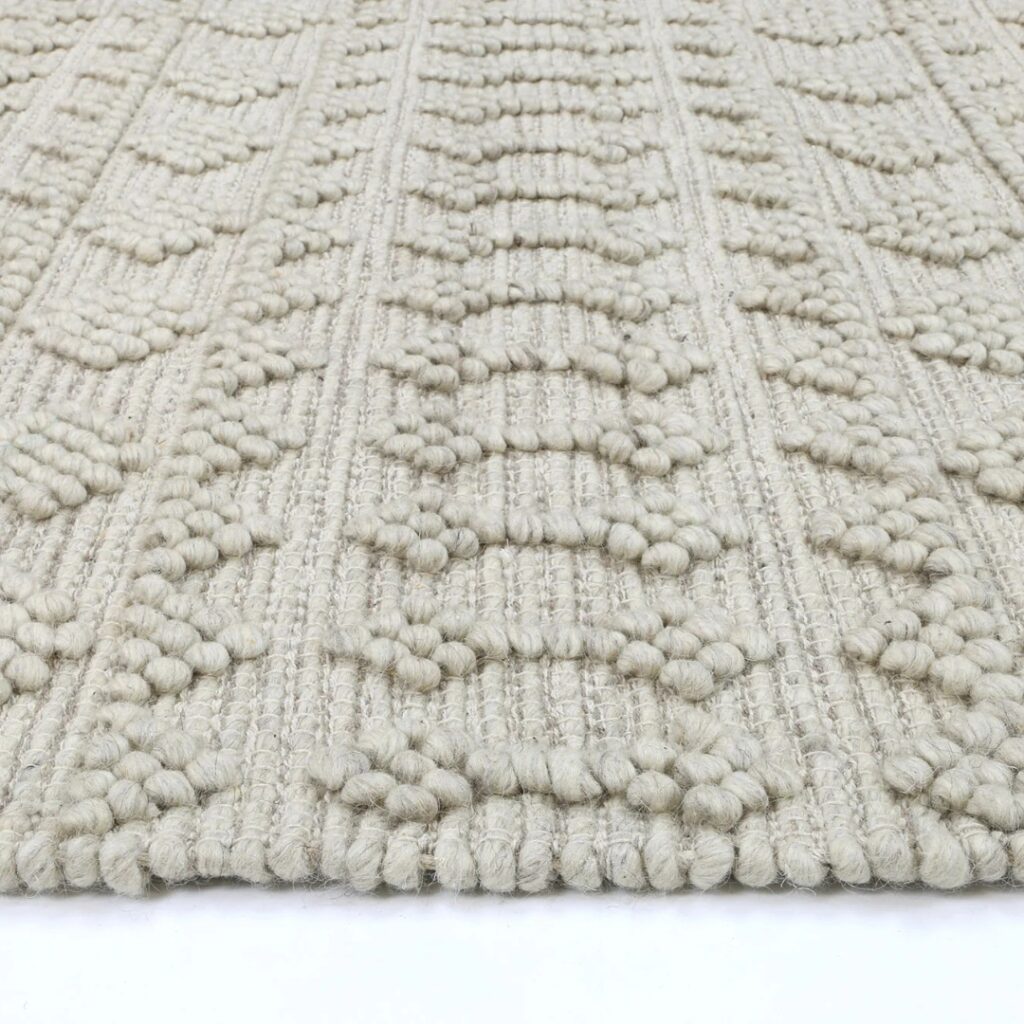 This handcrafted rug features a harmonious blend of 70% wool and 30% polyester, creating a supersoft texture that enhances any interior. Its tone-on-tone color palette and natural hues deliver understated sophistication, while the unique construction of raised and shallow woven sections adds visual depth to living spaces. Perfect for adding warmth to both modern and traditional decor styles.