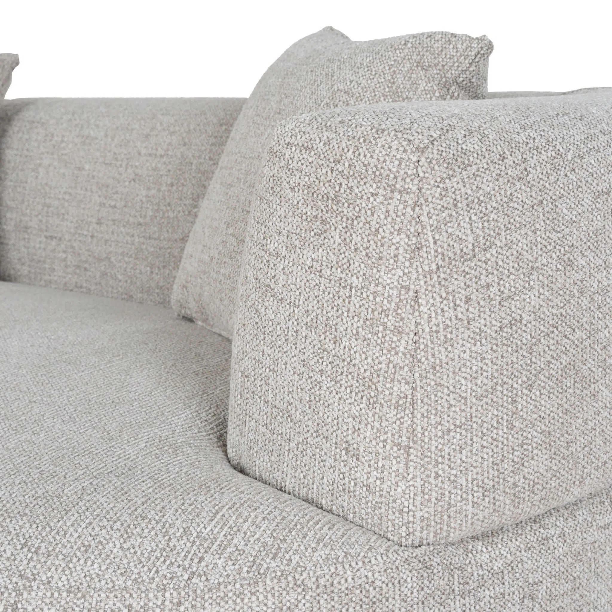 The durable pinewood frame is supported by web-and-spring suspension technology that maintains shape over time. High-density foam filling delivers a balanced soft/medium firmness level, ideal for extended seating. Integrated armrests at 70cm height offer ergonomic support, while the 120cm depth allows for relaxed leg positioning. Natural linen-polyester blend resists wear while maintaining breathable comfort in all seasons.