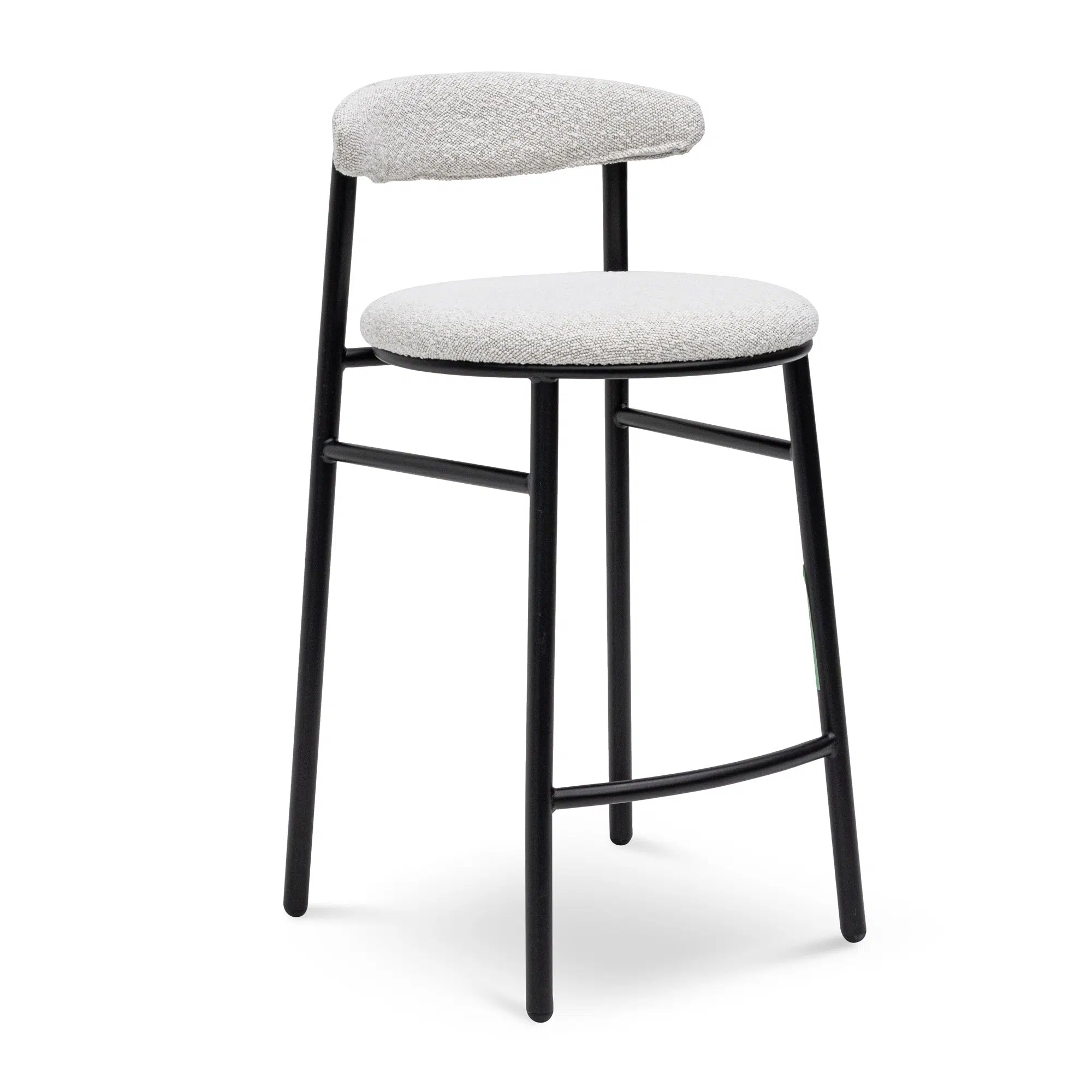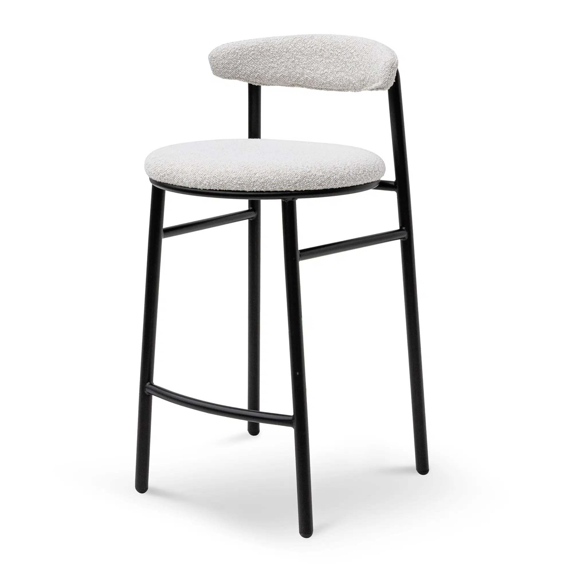 Javi 65cm Bar Stool – Moon White Boucle and Black Legs (Set of 2)