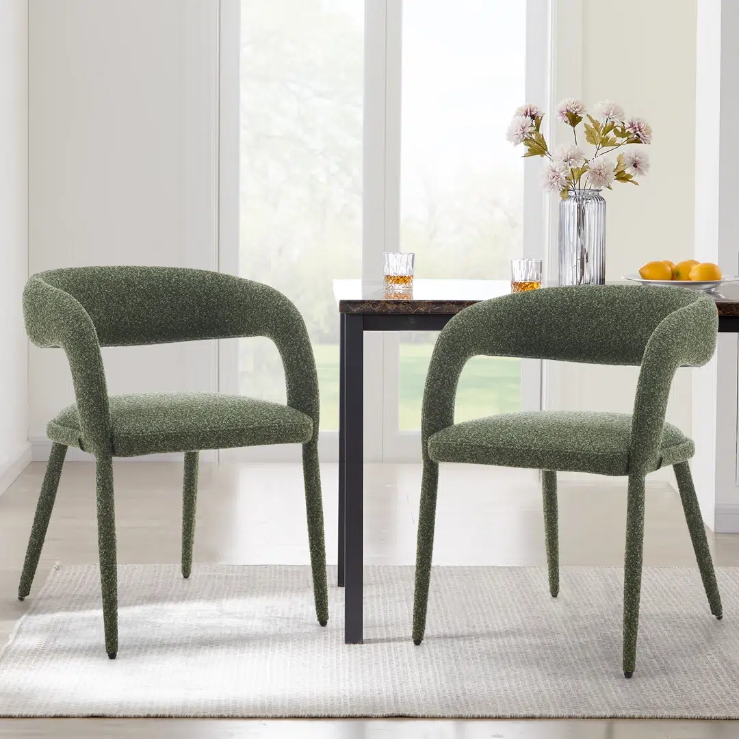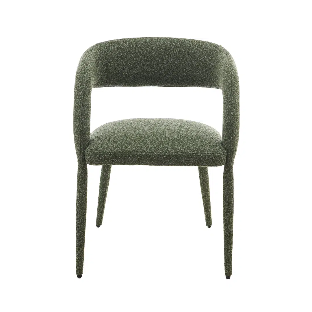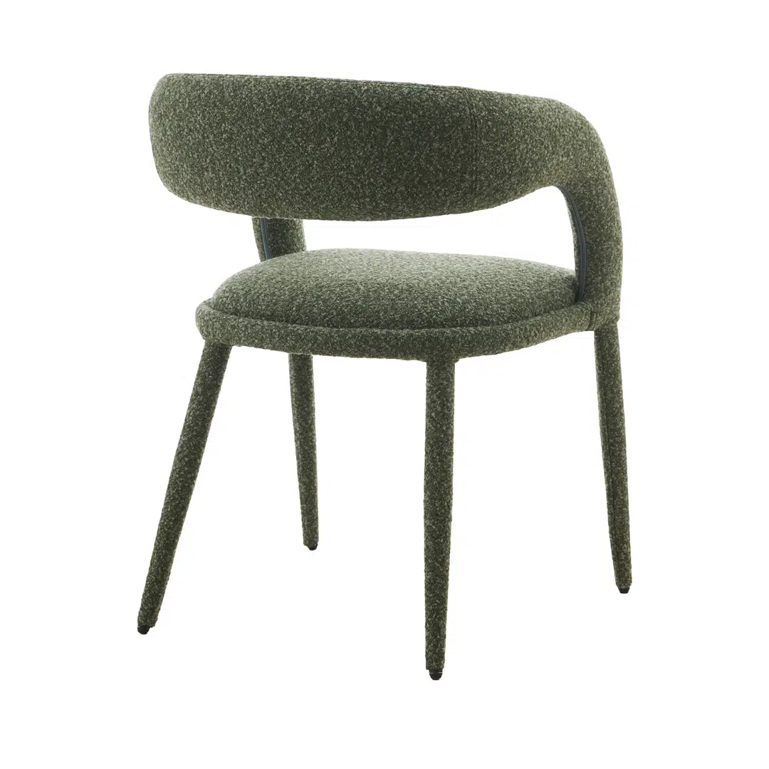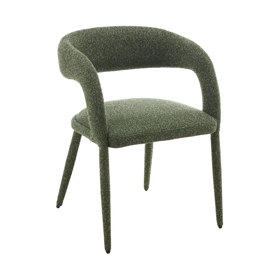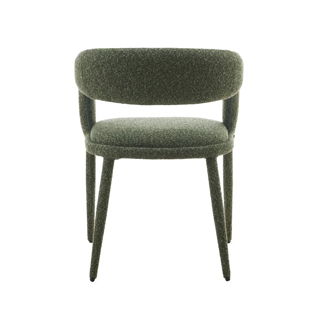 This contemporary dining chair blends minimalist aesthetics with timeless elegance, featuring a streamlined silhouette that complements any home decor style. Its clean lines and subtle curves create a sophisticated visual presence, making it an ideal choice for dining rooms, kitchens, or casual living spaces. The pine green upholstery adds a pop of color while maintaining a neutral foundation for various interior themes.