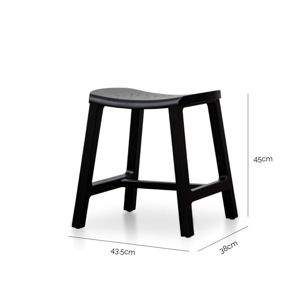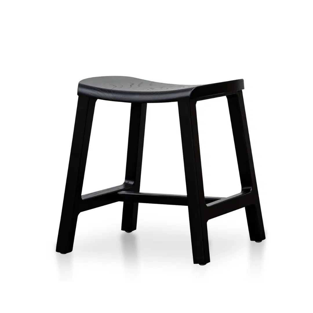 Crafted from ash wood and finished in a lustrous black tone, this stool exudes sophistication. The dark wood surface adds a striking contrast to light-colored countertops or walls, creating a focal point in any room. The smooth, polished texture ensures durability while maintaining a refined visual appeal that complements both contemporary and classic decor styles.