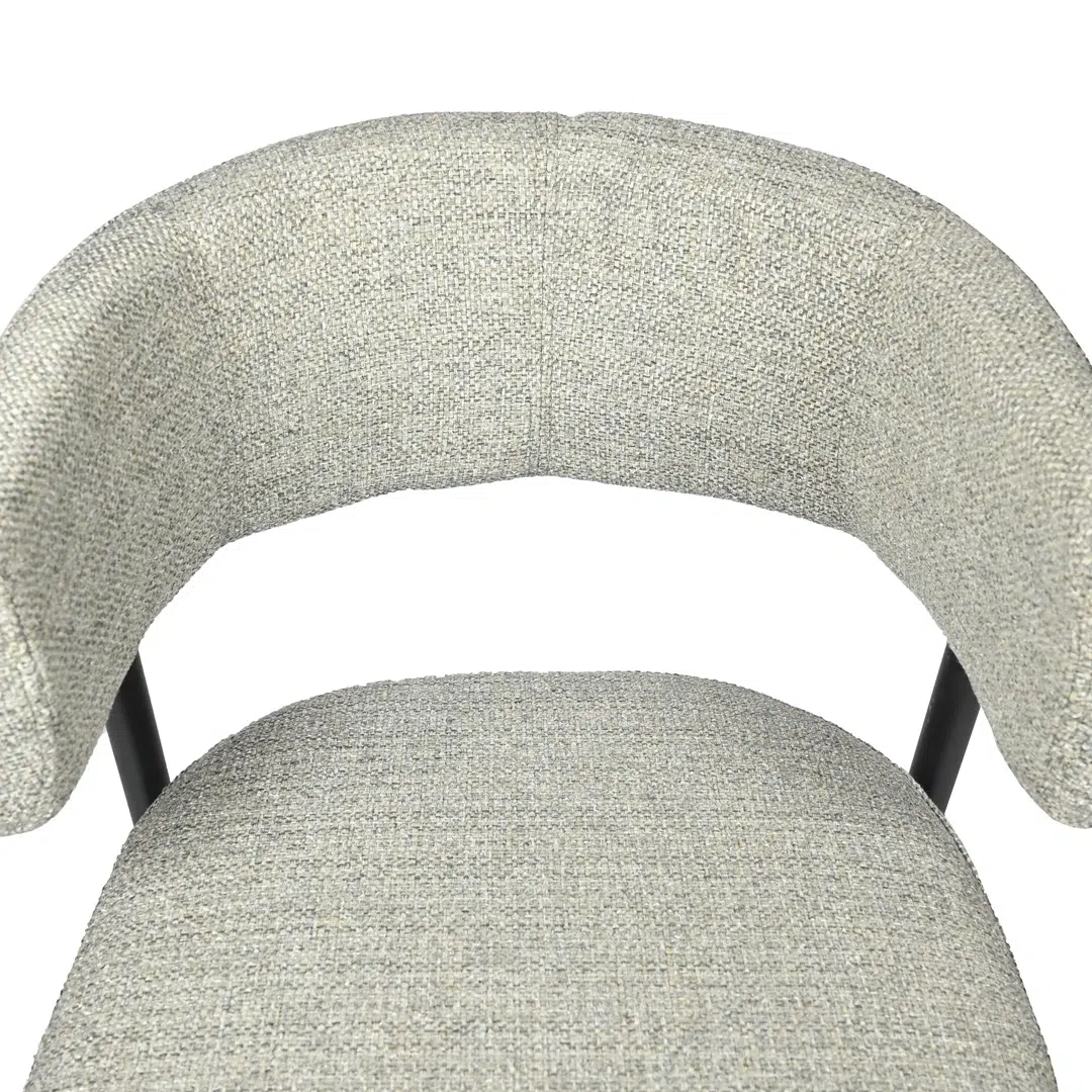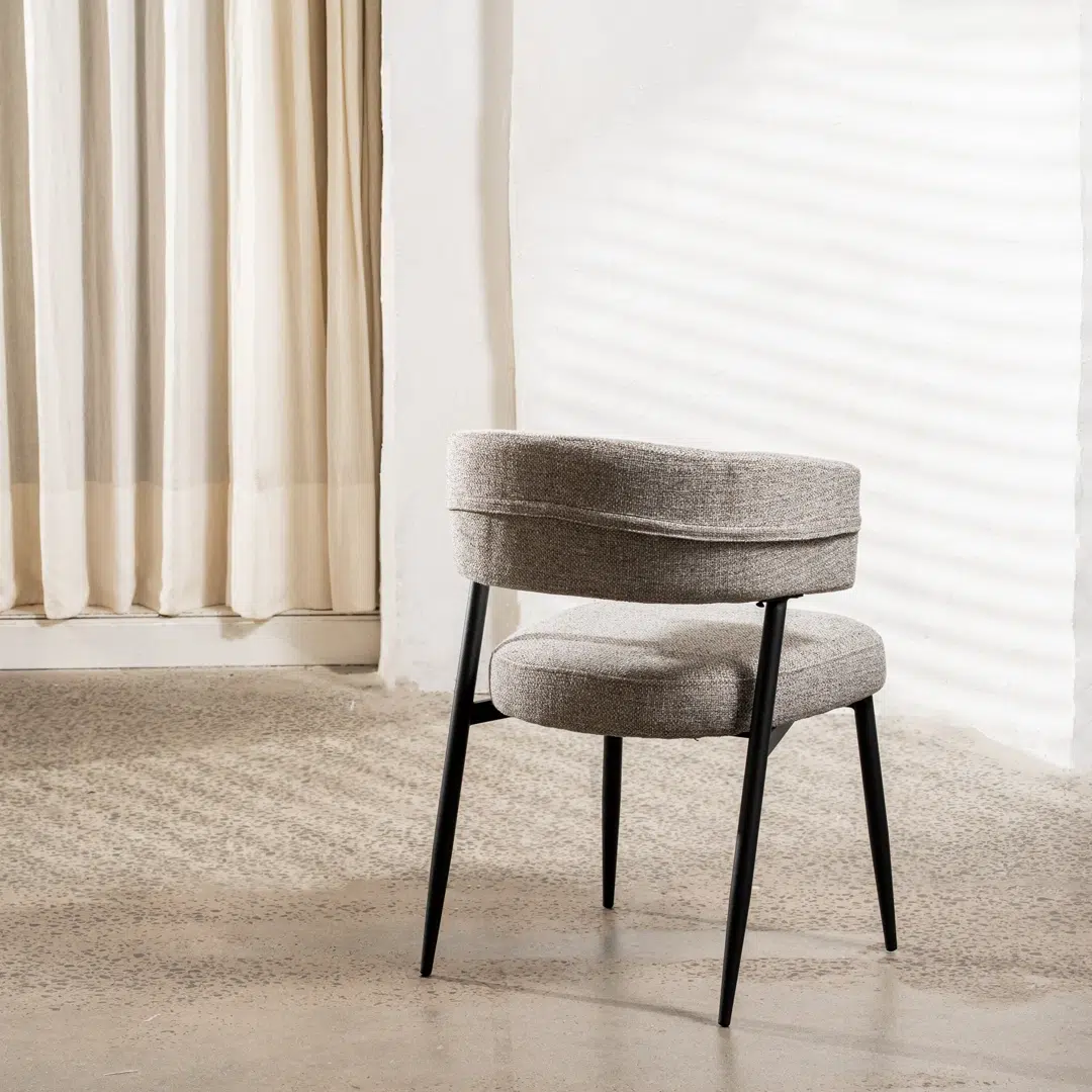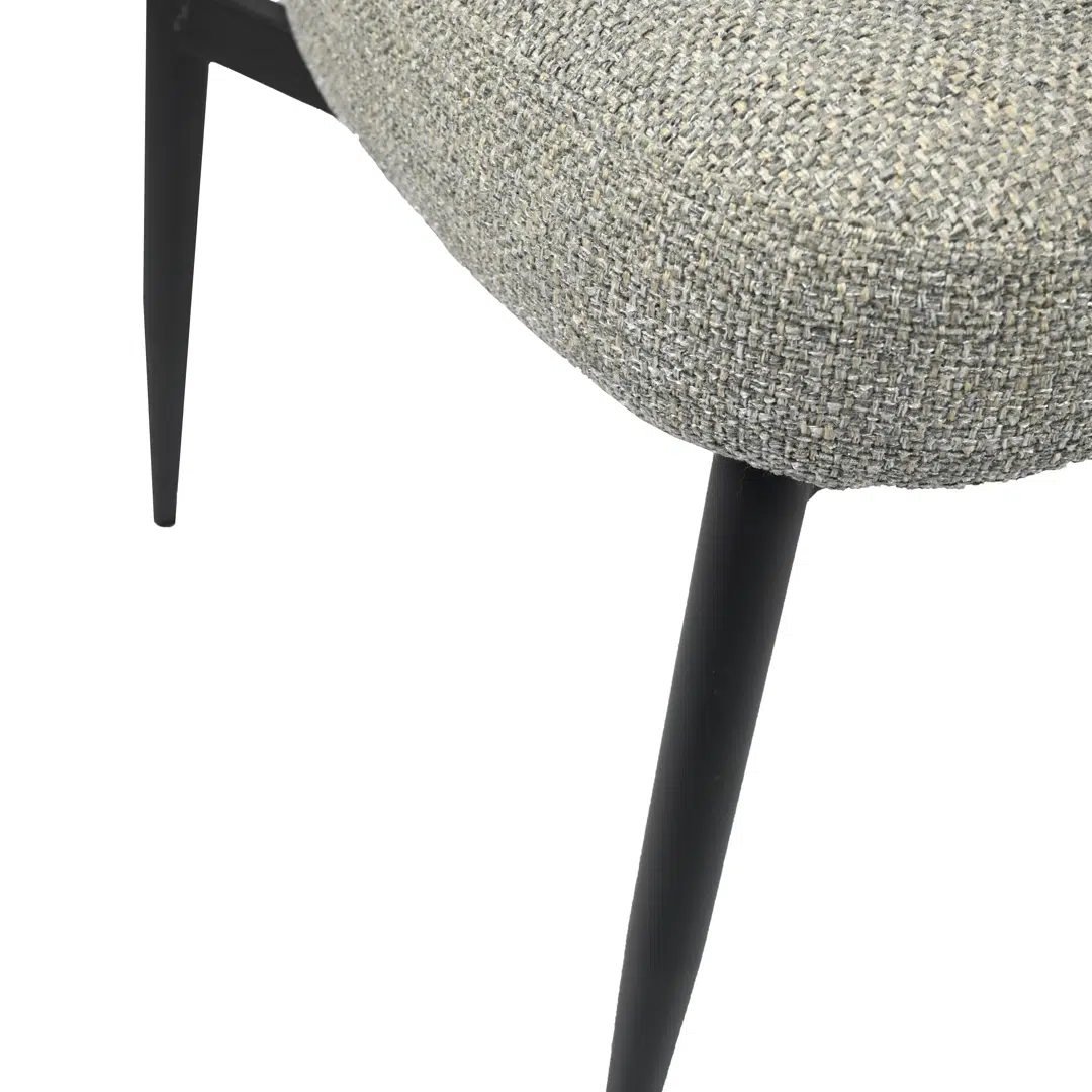 This dining chair elevates any dining room with its timeless linen-colored upholstery and black powder-coated metal frame. The granitetextured fabric offers a refined, tactile experience while maintaining a versatile aesthetic that complements both contemporary and classic interiors.