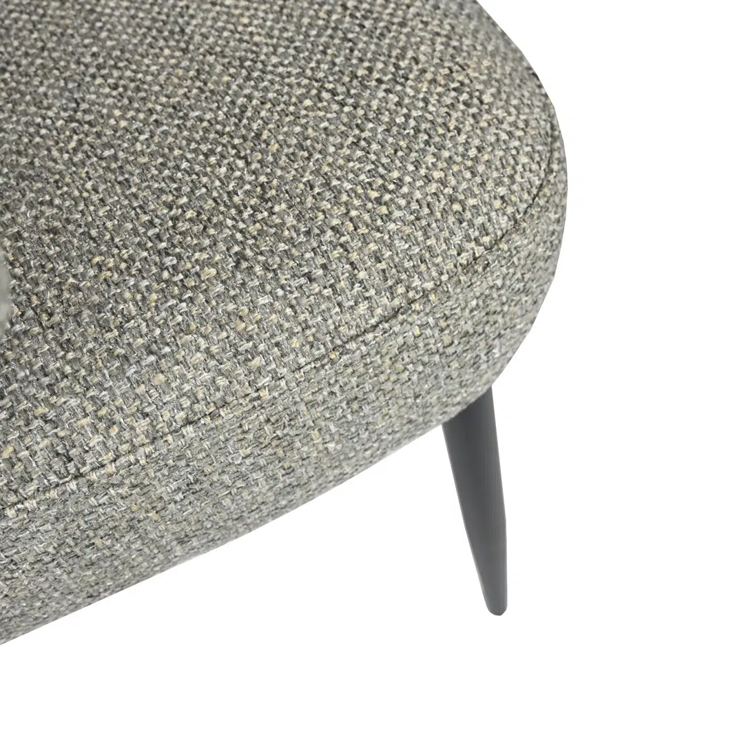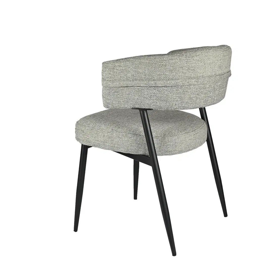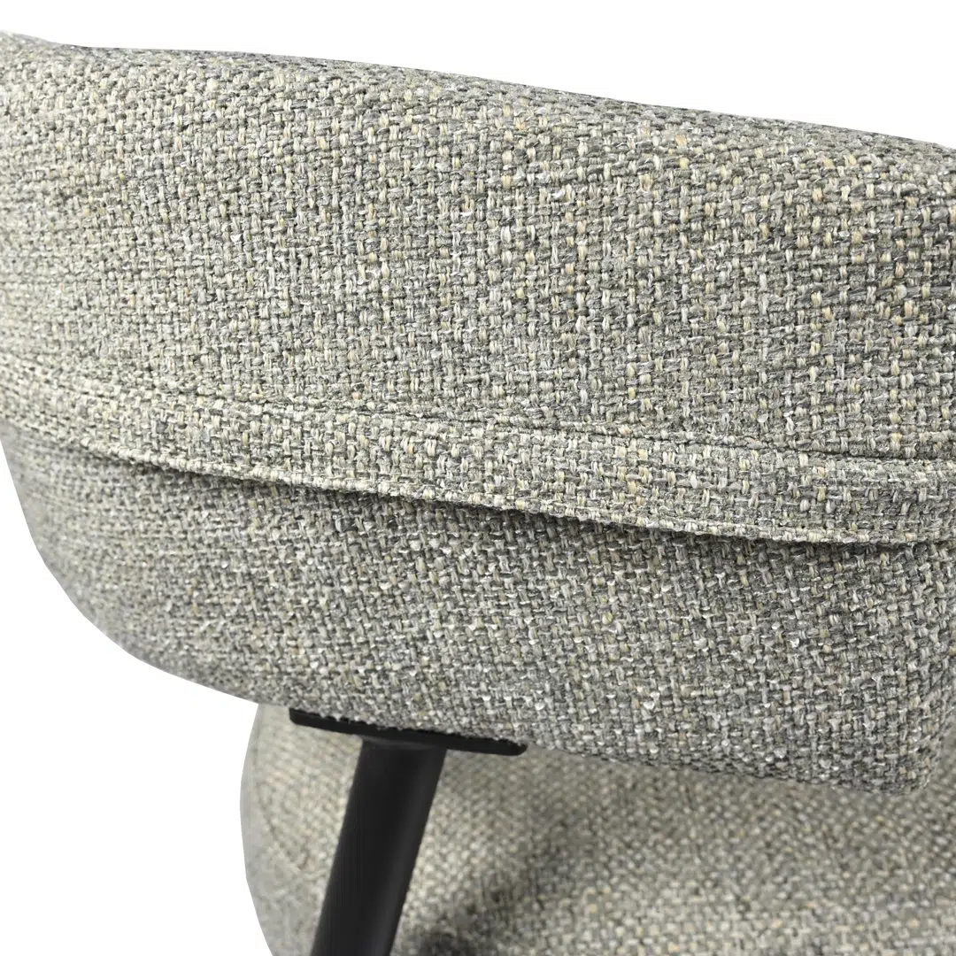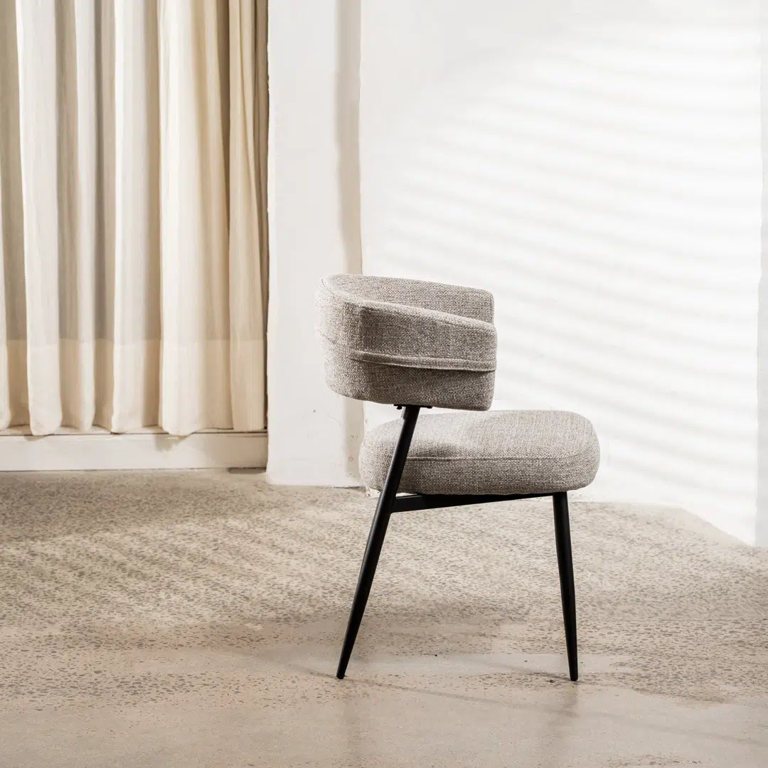 This dining chair elevates any dining room with its timeless linen-colored upholstery and black powder-coated metal frame. The granitetextured fabric offers a refined, tactile experience while maintaining a versatile aesthetic that complements both contemporary and classic interiors.