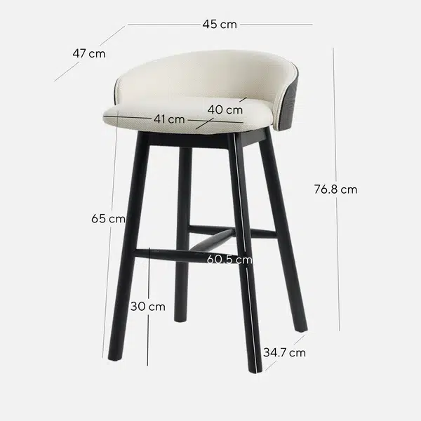 With a total height of 76.8cm and a seat height of 65cm, this 60.5cm leg-height stool offers optimal comfort for extended use at counters or breakfast bars. The 34.7cm distance between legs ensures stability, while the 41cm wide seat provides ample space for relaxed seating during social gatherings or casual meals.