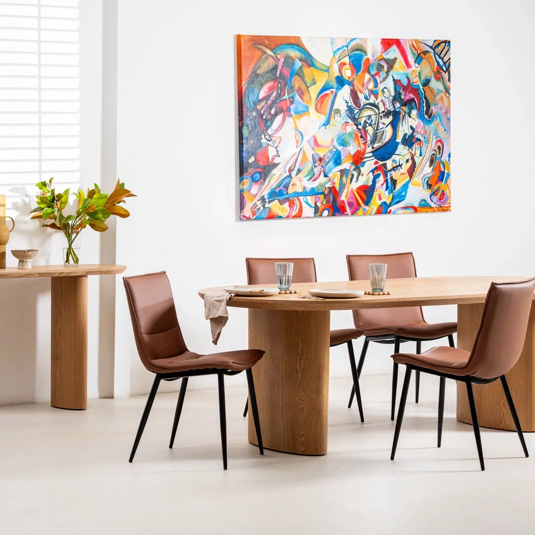 Available in textured boucle fabric or PU upholstery, this chair allows you to choose the finish that best complements your dining room décor. The boucle option adds soft texture and warmth, while the PU offers a smooth, easy-to-clean surface. Both materials pair beautifully with the streamlined frame for a cohesive and stylish look.