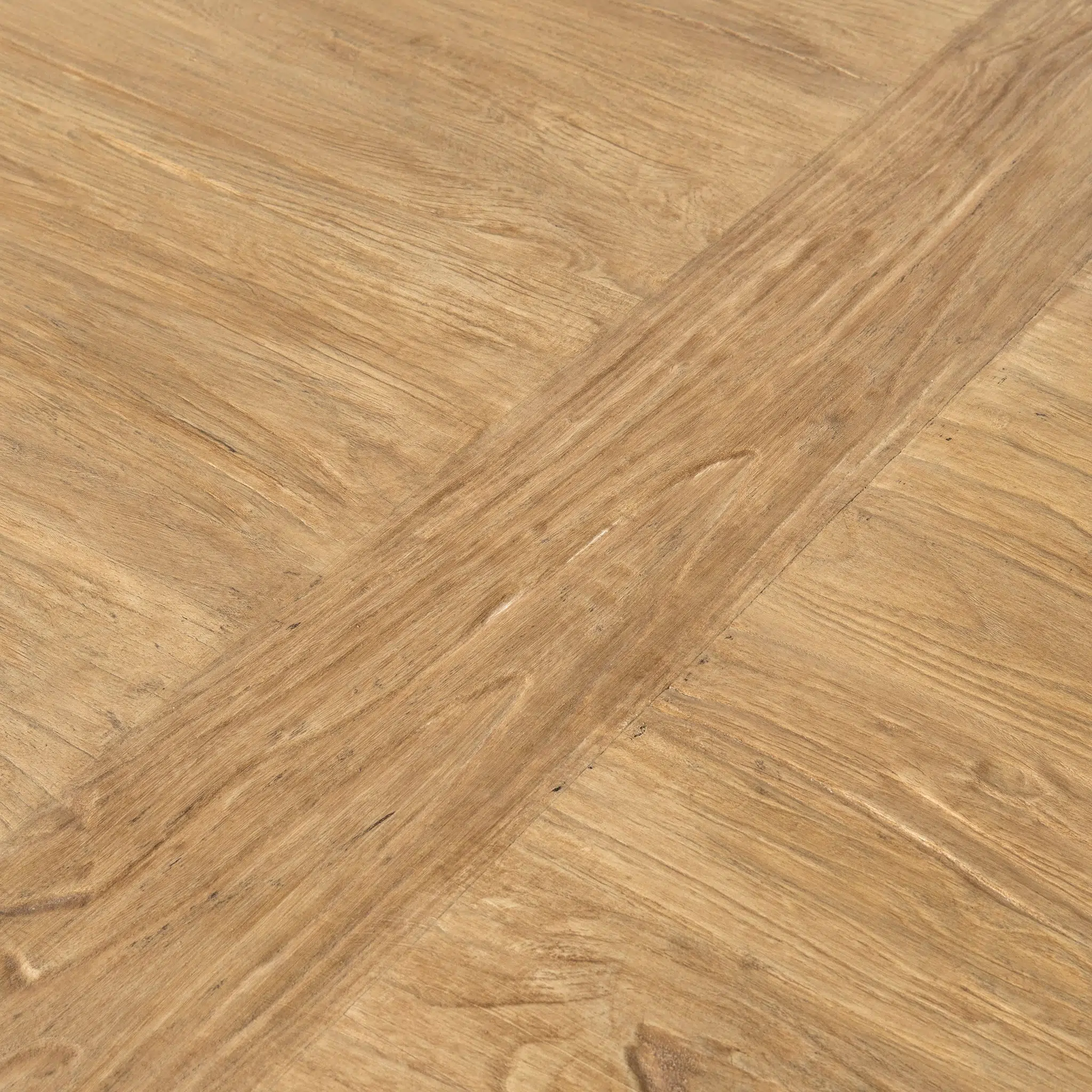 – Overall size: 300cm (W) x 102cm (D) x 75cm (H) – Tabletop thickness: 7cm – Leg dimensions: 70cm (W) x 68cm (H) – Weight capacity: 100 kg – Finish type: Natural wood with wax coating – Compatibility: Contemporary/traditional interiors