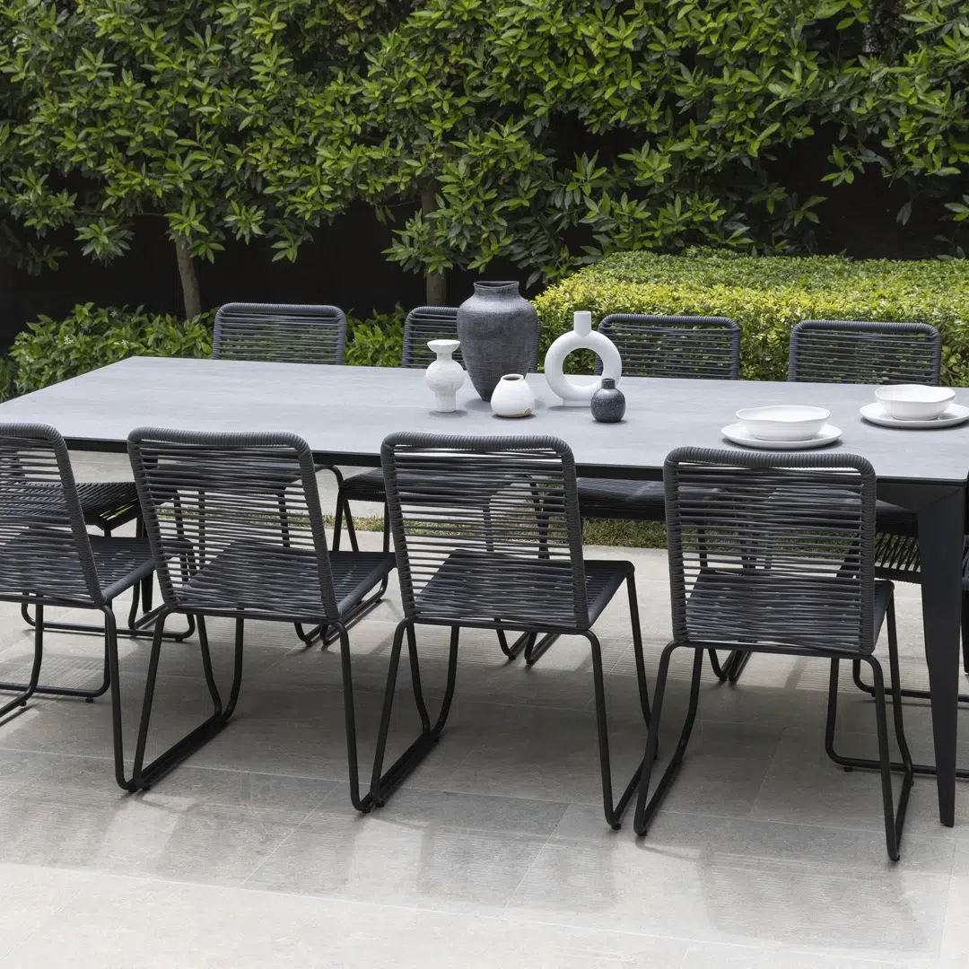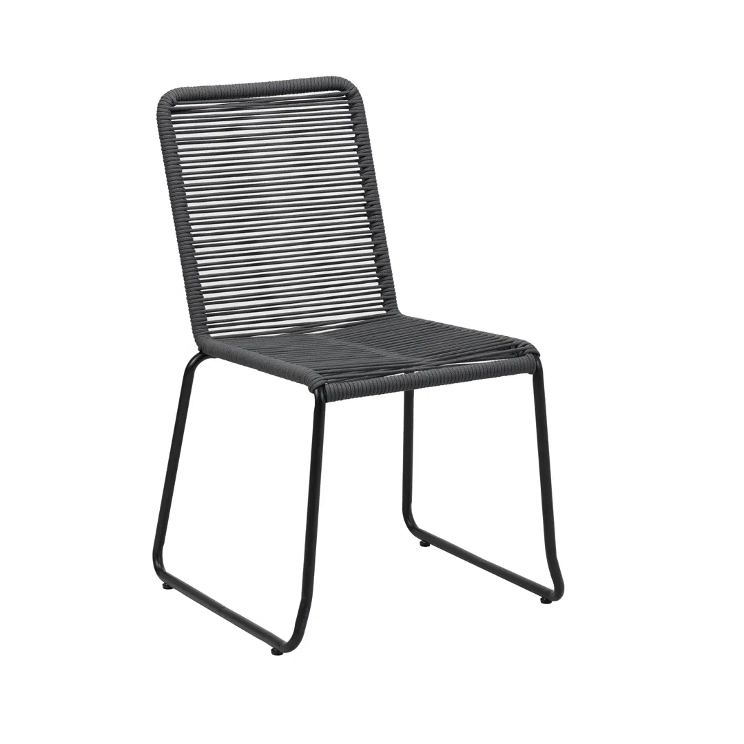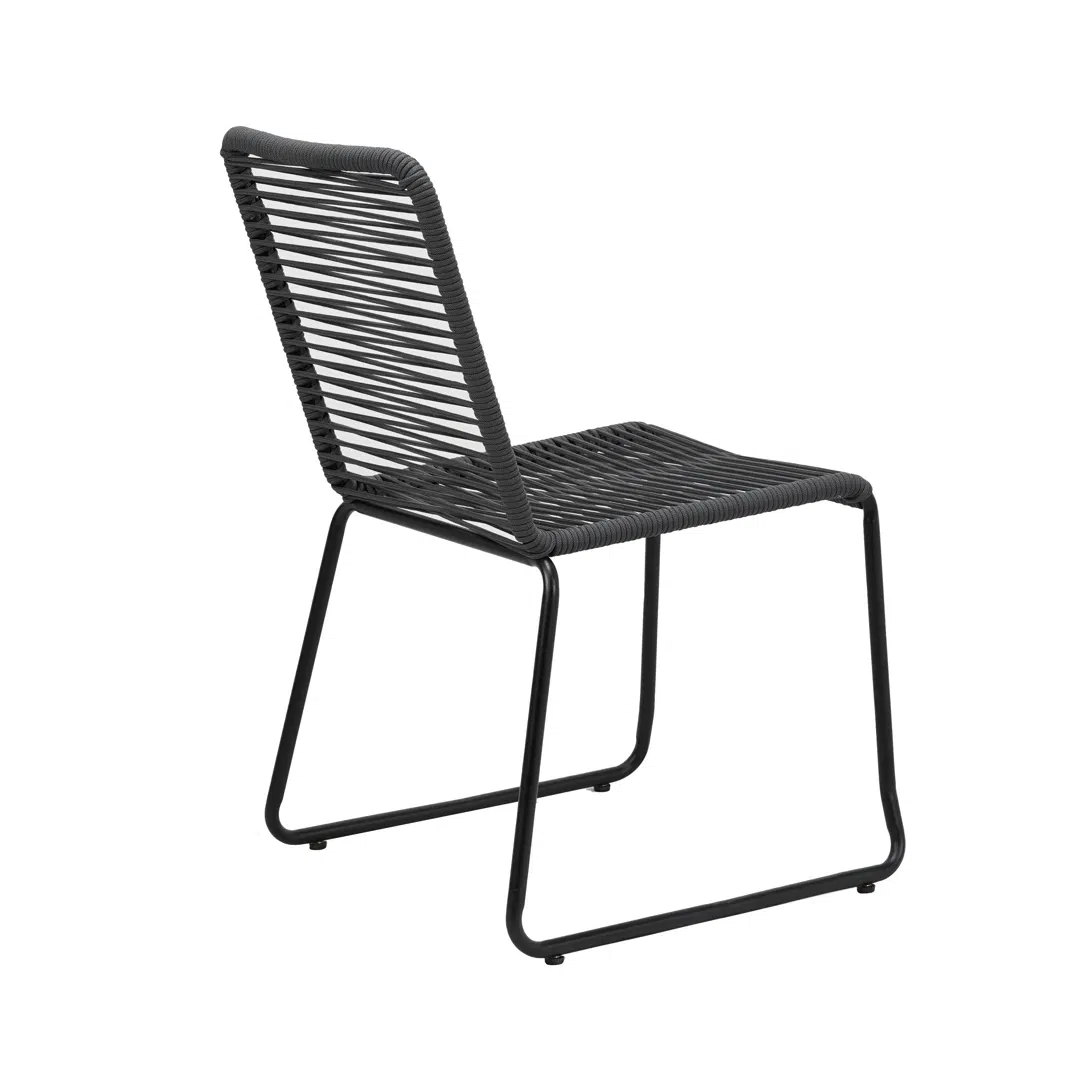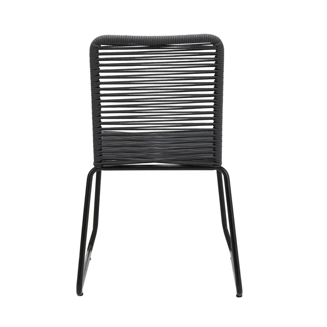 Elevate your outdoor dining experience with this stylish rope dining chair, blending contemporary design with exceptional comfort. Its sleek charcoal rope upholstery is expertly woven over a robust black powder-coated metal frame, creating a striking visual statement while ensuring durability for both residential and commercial spaces.