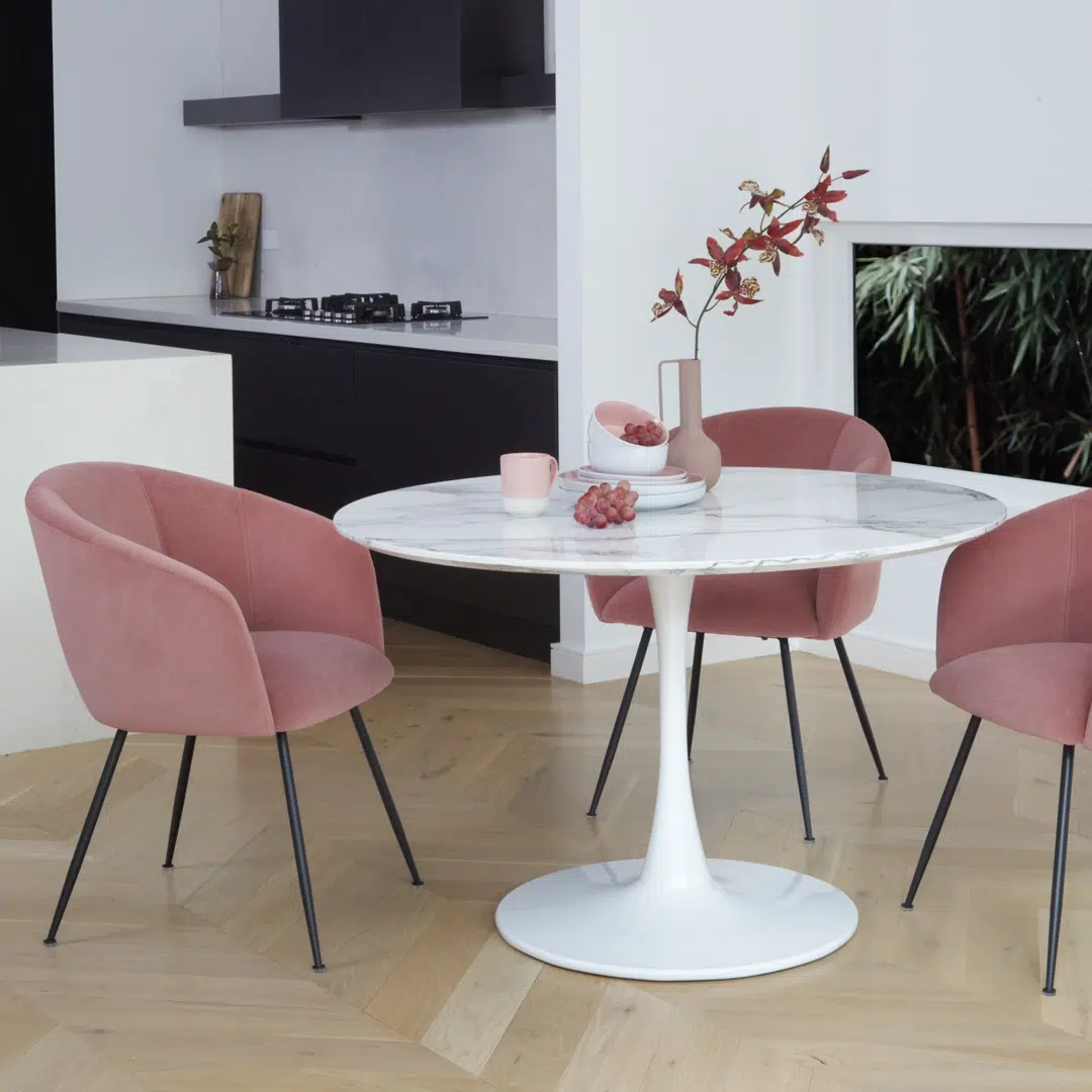 With a 120cm diameter surface and 76cm height, this table comfortably seats six people for meals or gatherings. The wide, stable base ensures balanced support while maintaining a compact footprint—ideal for urban apartments or spacious dining areas. The round shape encourages conversation and flows naturally with curved-edge chairs or angular modern seating.
