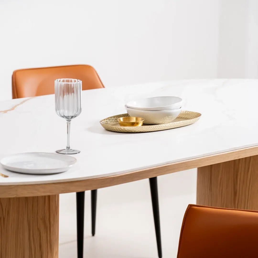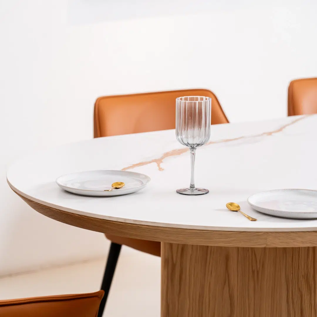 Crafted for longevity, the ceramic tabletop resists scratches, stains, and heat, while the reinforced ash veneer base ensures stability and resilience. The table’s MDF core provides a solid foundation, making it ideal for daily meals, dinner parties, or as a stylish workspace.