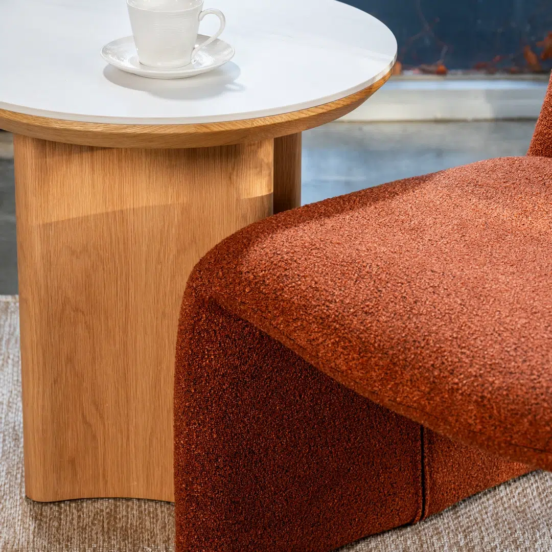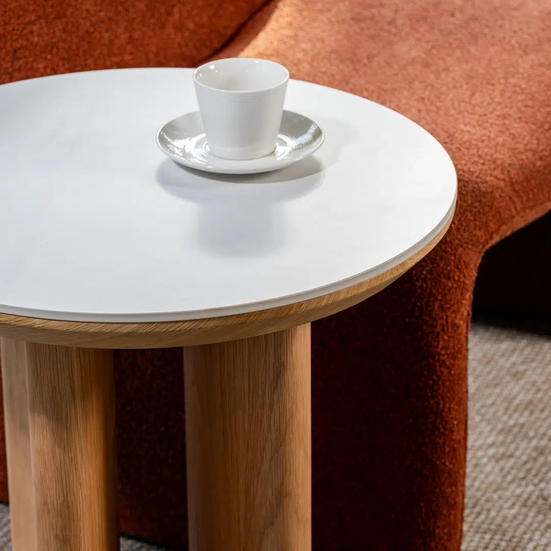 The Lucerne Side Table redefines modern simplicity with its clean lines and natural-inspired design. Crafted from premium ash veneer in a soothing natural finish, the table features elegantly tapered legs that elevate its silhouette while maintaining a grounded presence. The matte ceramic tabletop mimics the organic beauty of marble, blending Australiana charm with contemporary minimalism to create a versatile centerpiece for modern interiors.