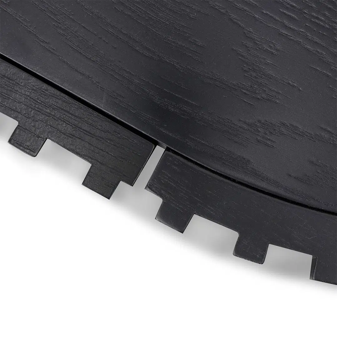 Crafted from engineered wood with a protective black oak veneer, this table resists scratches and maintains its appearance over time. The precise curved structure and textured surface create a premium look that withstands daily use. Its sturdy build and refined details make it a reliable addition to any home.